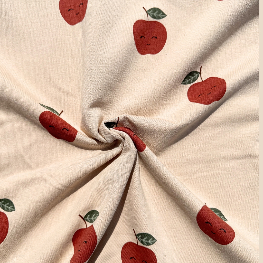 French Terry – Rode Appels op Beige
