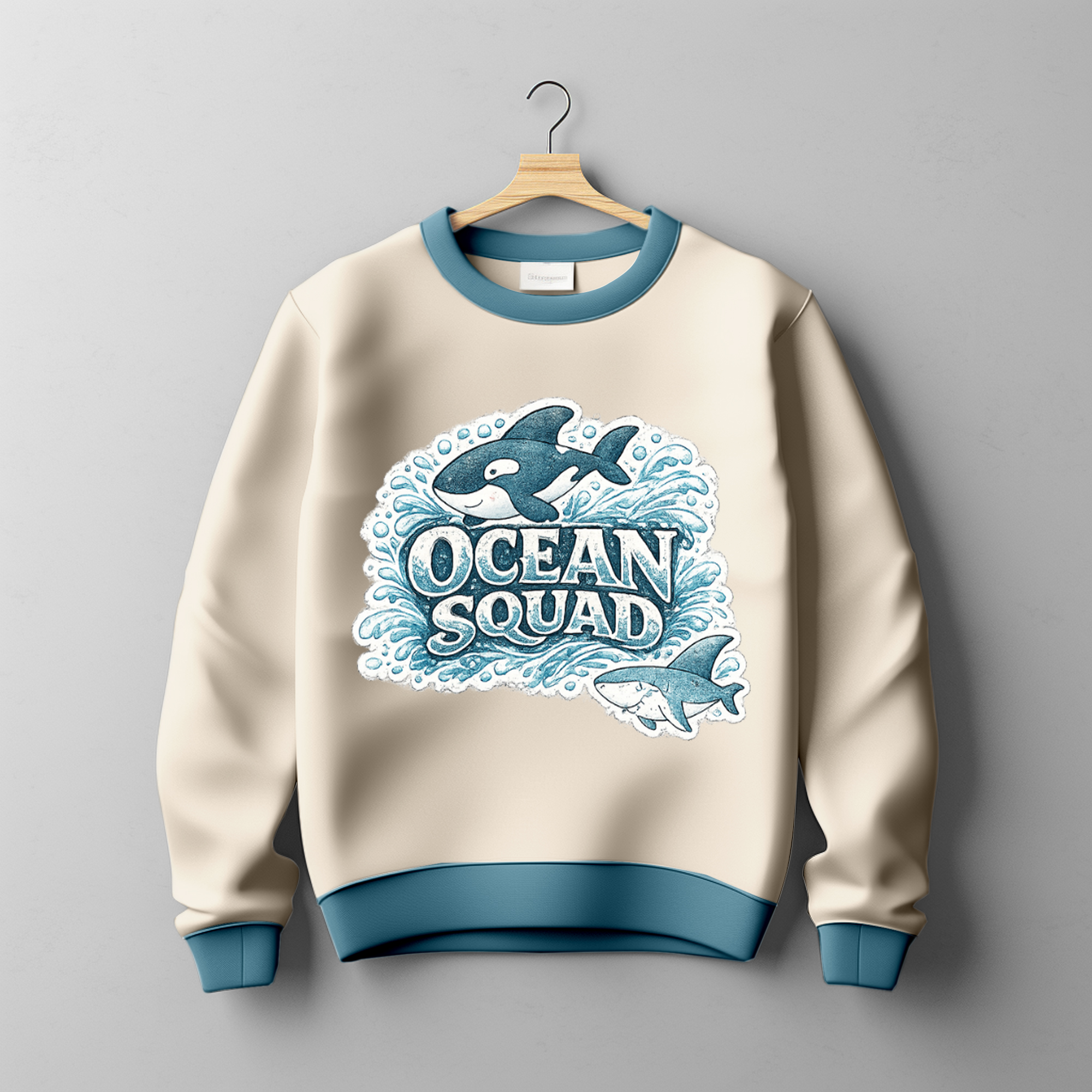 De transfer is eenvoudig aan te brengen met een strijkijzer of warmtepers en blijft stevig zitten, zelfs na veelvuldig wassen en dragen. De combinatie van de tekst “Ocean Squad” en de bijpassende oceaansfeer maakt dit ontwerp perfect voor kleine avonturiers die graag deel uitmaken van hun eigen onderwaterteam.