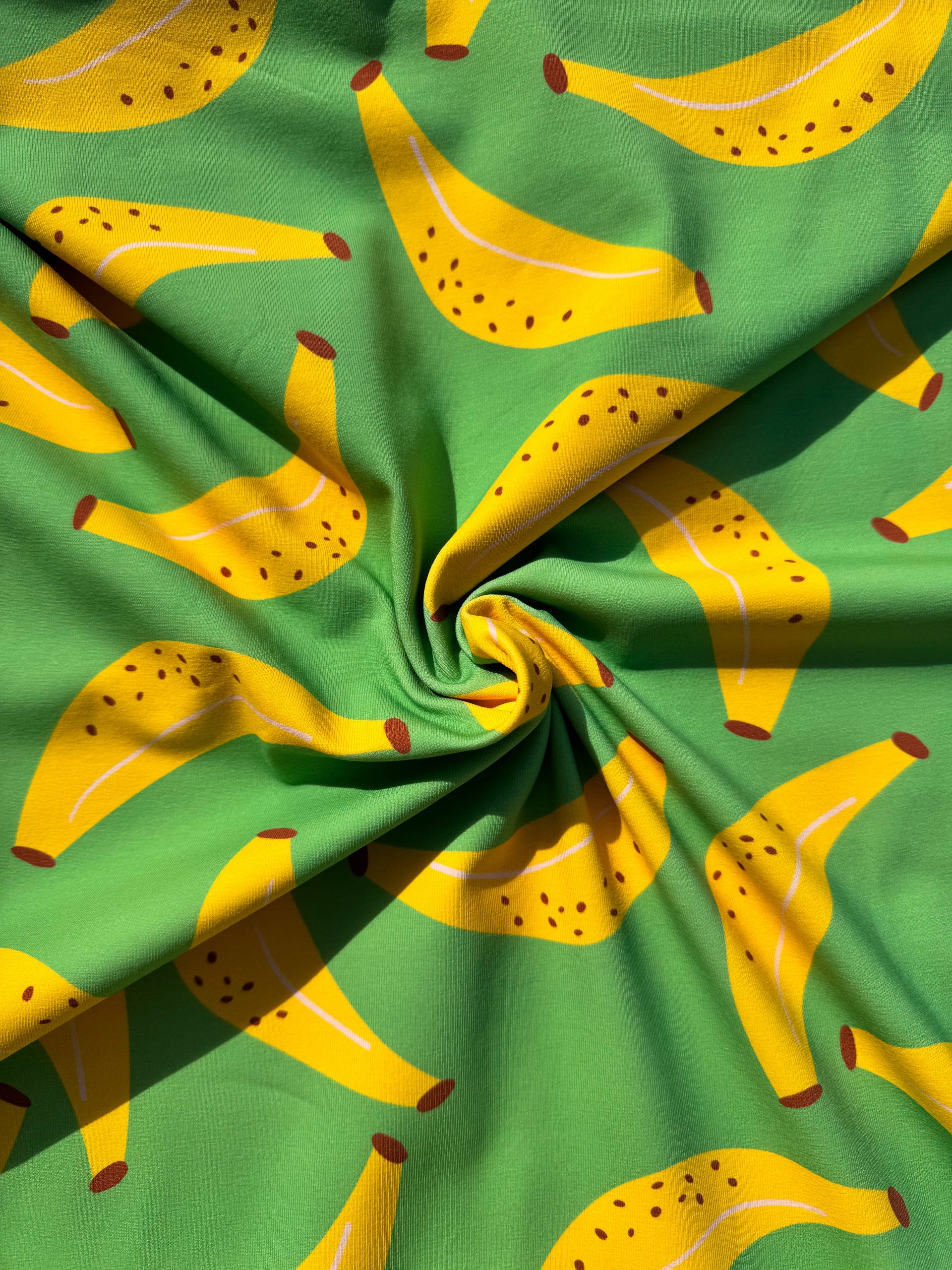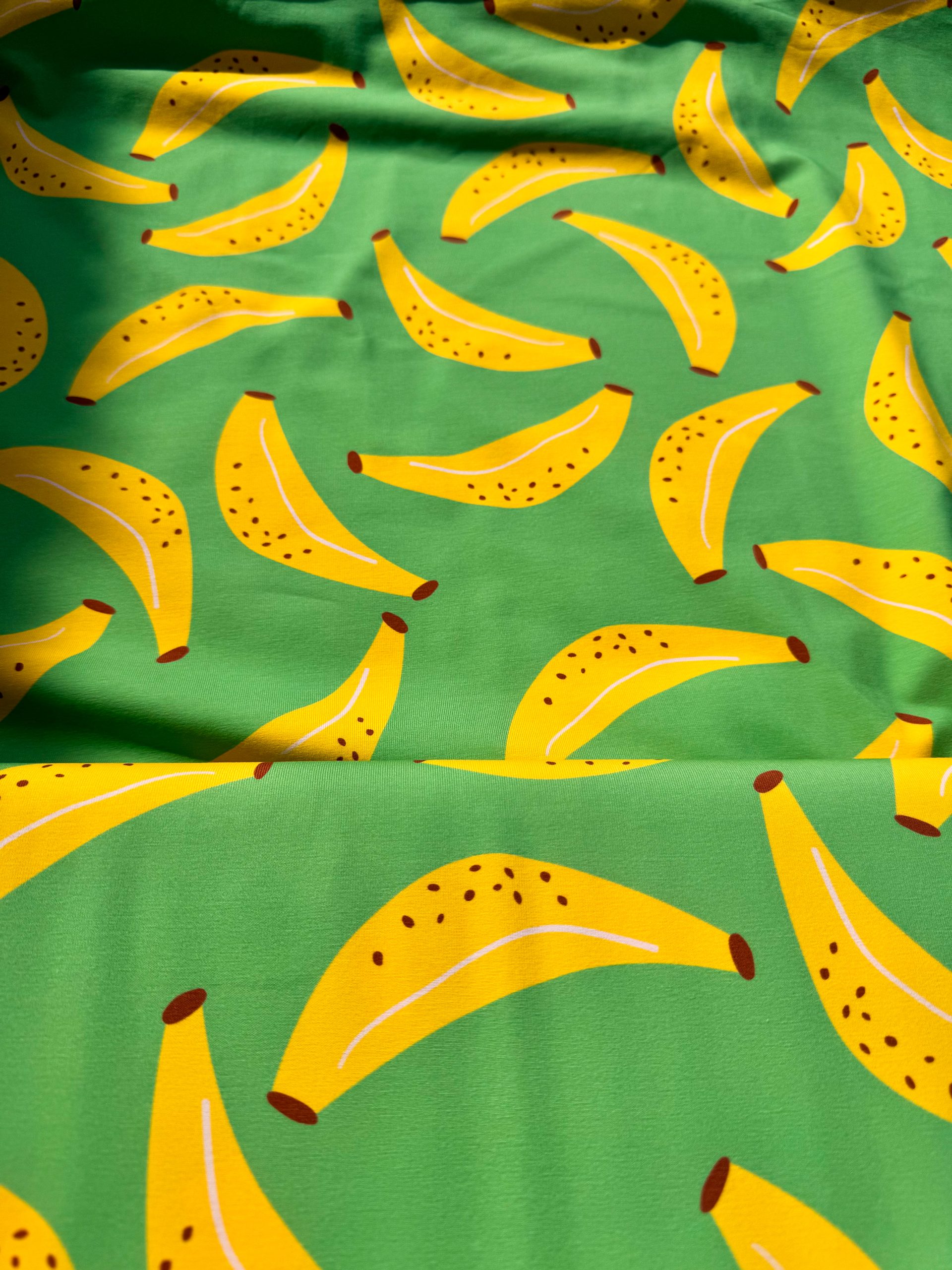 Zeg hallo tegen de ultieme blikvanger uit onze Food Party Capsule: de bananen stof! Deze vrolijke, fruitige print brengt instant zomervibes en een flinke dosis humor naar je garderobe. Of je nu een outfit maakt voor een feestje, een festival of gewoon voor je dagelijkse dosis fun – deze stof zorgt voor een glimlach op elk gezicht.