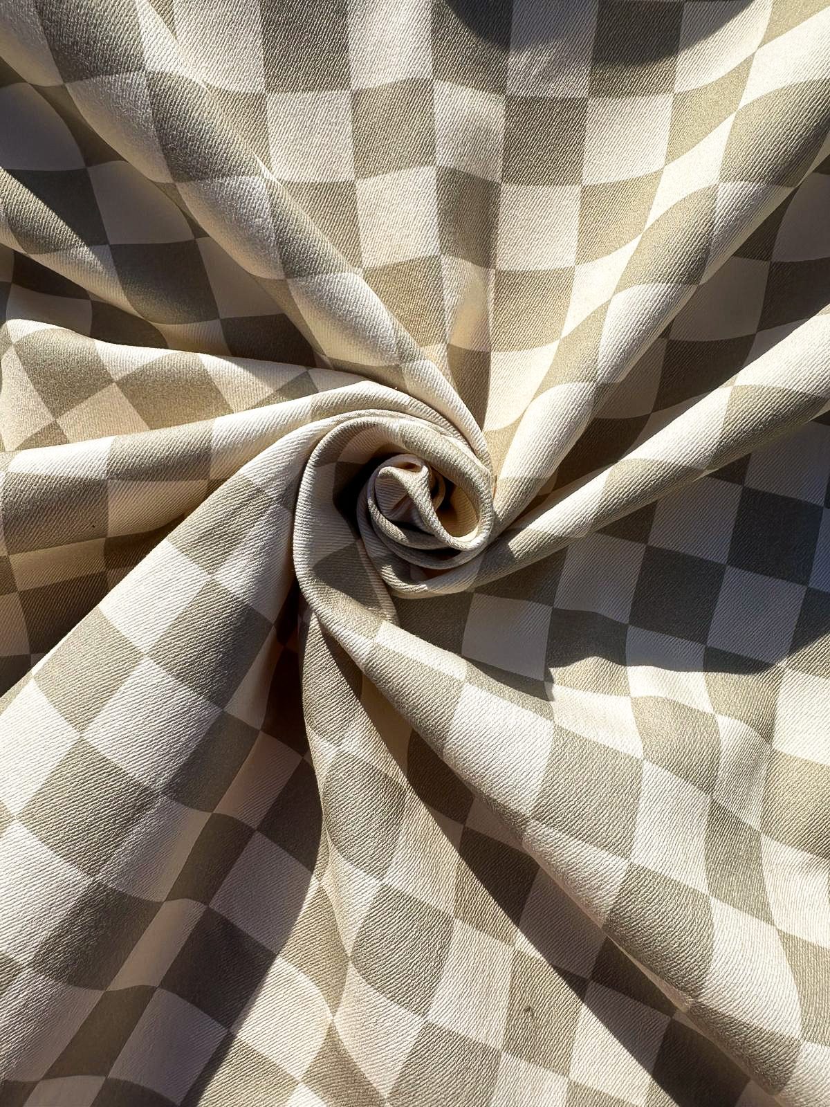 Met de Beige Checks op Denim Twill haal je een veelzijdige en unieke stof in huis die krachtig én verfijnd oogt.