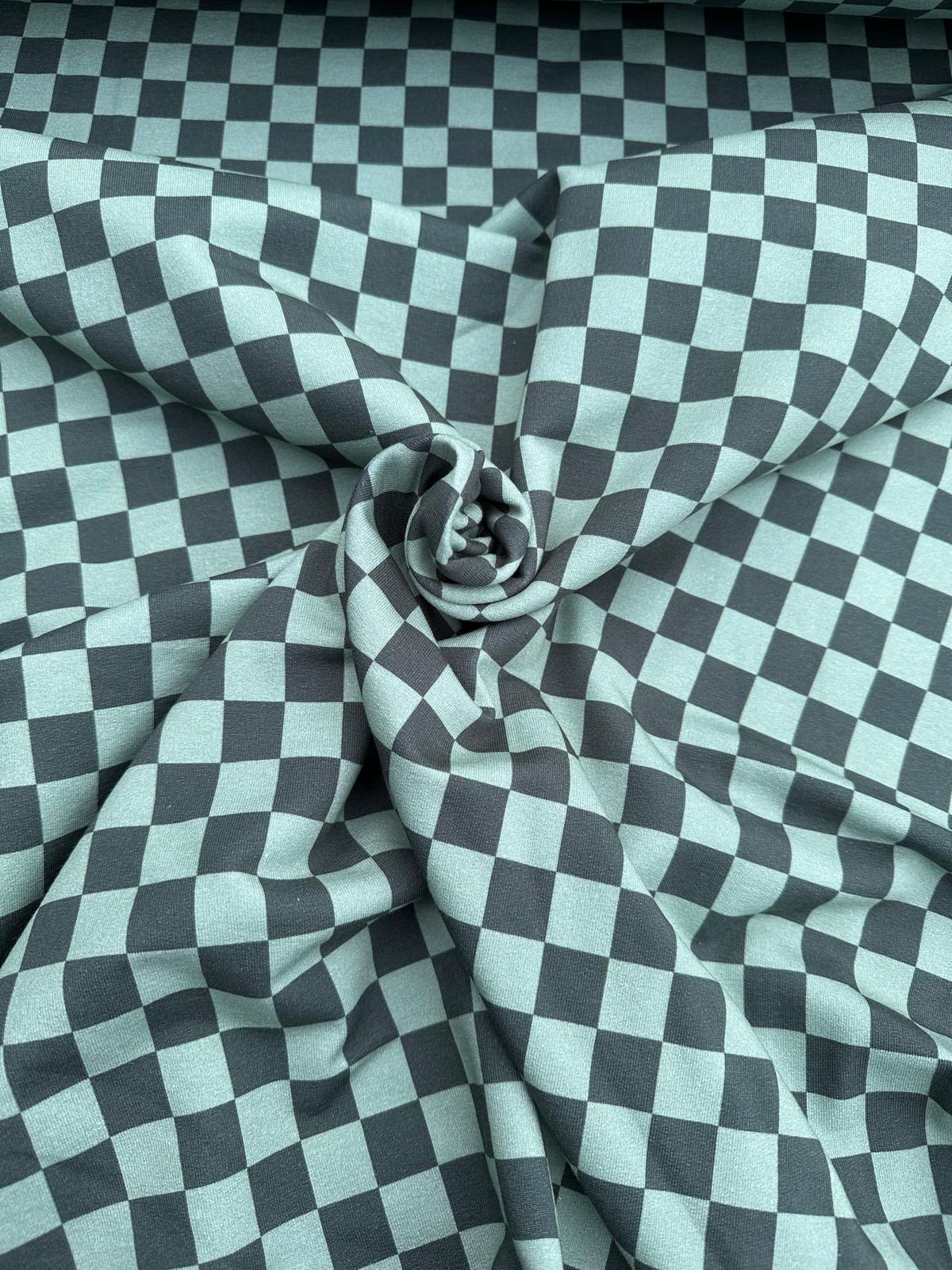 Bestel jouw French Terry met groene blokjes online en creëer unieke, moderne outfits met deze frisse en zachte sweatstof.