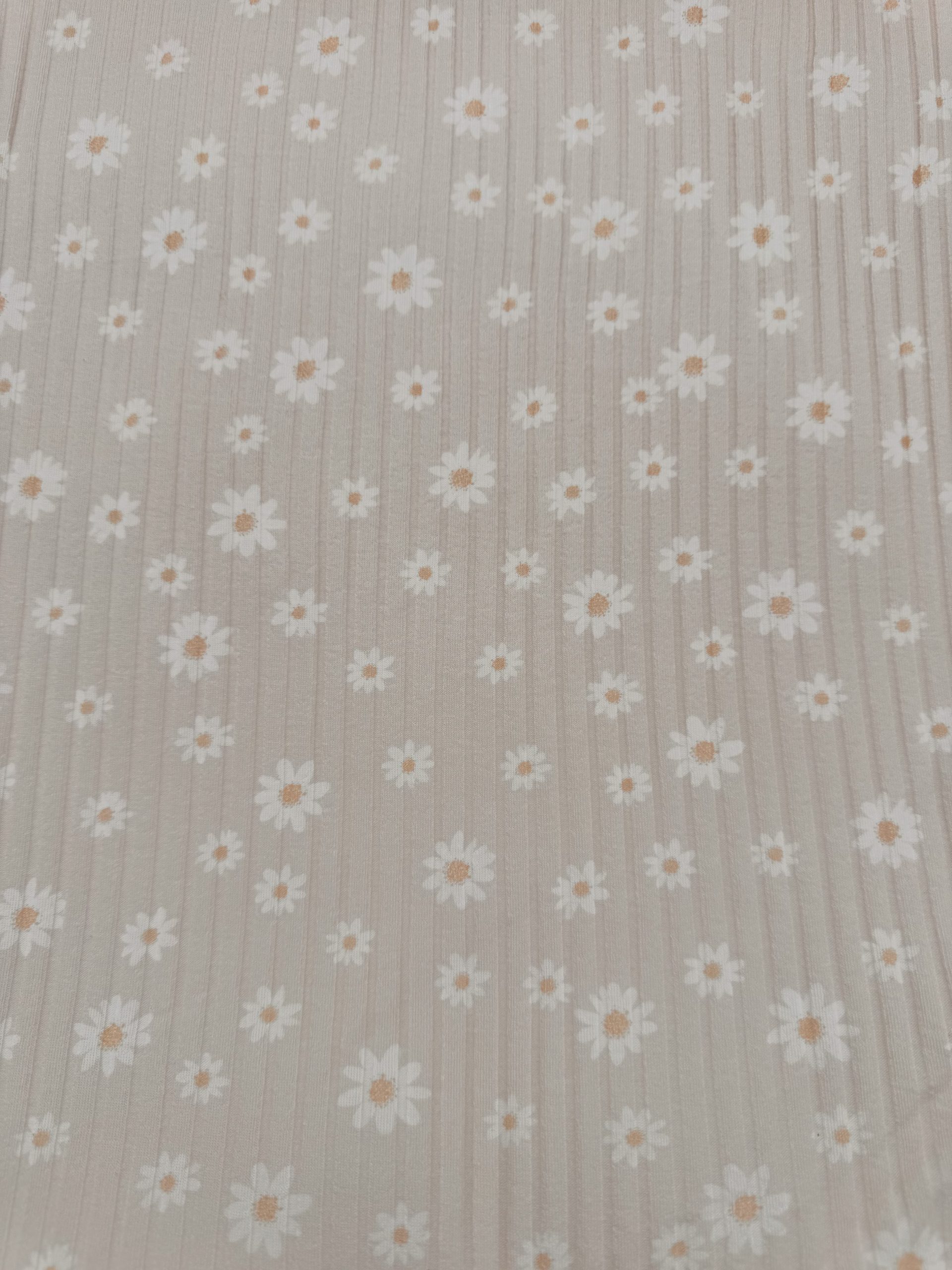 Geef je projecten een stijlvolle touch met onze Bloom Rib brede ribjersey, bedrukt met een charmant bloemenmotief. Het zachte, rekbare materiaal met brede ribstructuur voelt heerlijk comfortabel aan en geeft kledingstukken zoals jurkjes, tops, rokjes of baby- en kinderkleding een luxe uitstraling. Het bloemenpatroon voegt een vrolijke en elegante flair toe, waardoor je kleding meteen een bijzondere uitstraling krijgt.
