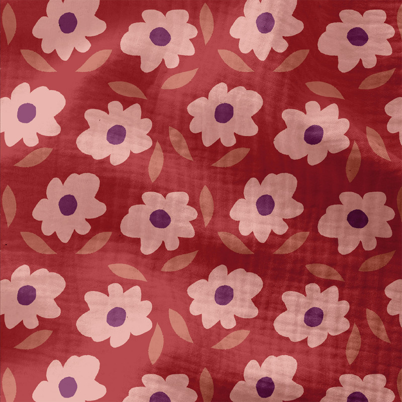 Geef je creaties een levendige en speelse uitstraling met onze double gauze in een warme rode tint, versierd met beige bloemen die subtiel worden geaccentueerd door een paarse stip. De dubbelgeweven katoenen stof is heerlijk zacht, ademend en heeft het kenmerkende nonchalante kreukeffect waardoor strijken overbodig is. Perfect voor blouses, jurken, kinderkleding of accessoires die vrolijk en comfortabel tegelijk zijn.