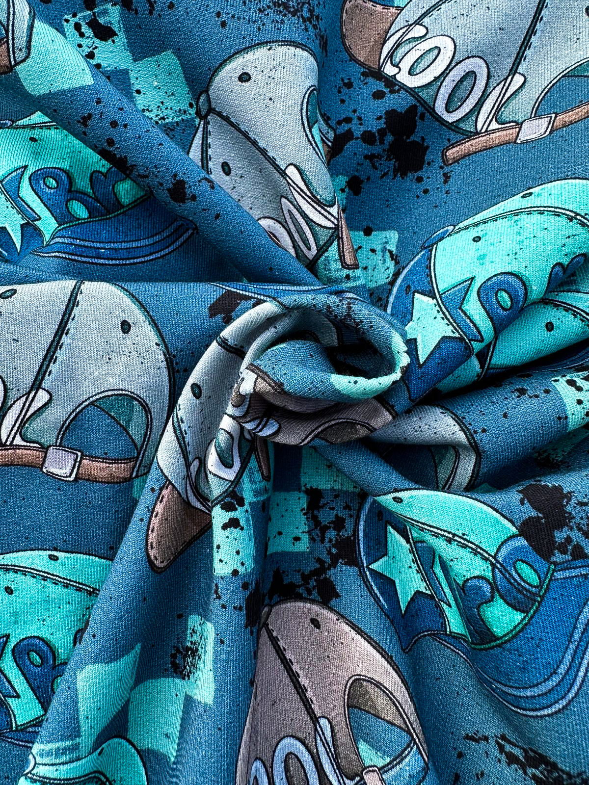 De reactieve print zorgt voor diepe, wasvaste kleuren die langdurig mooi blijven, zelfs na veelvuldig dragen en wassen. De stof zelf is heerlijk zacht aan de binnenkant, ademend en soepel, ideaal voor sweaters, hoodies en kinderkleding met een stoere twist.