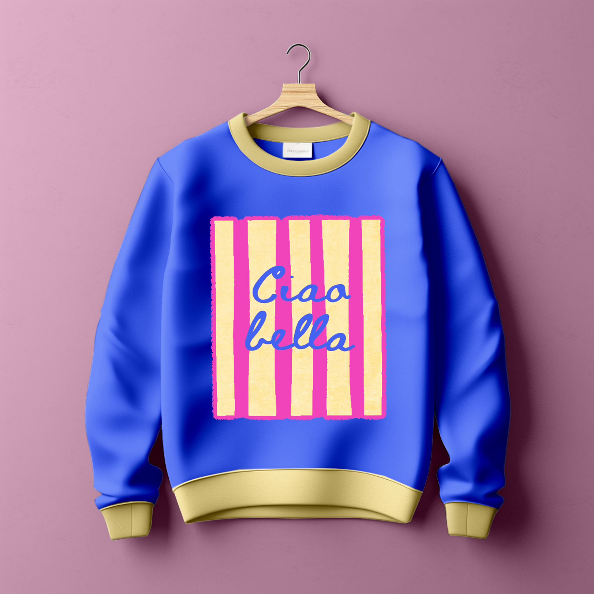 De Ciao Bella roze transfer is ideaal voor fashion-items, vakantie-outfits en handmade creaties met een happy, zomerse uitstraling. Perfect voor iedereen die houdt van stijl, positiviteit en een speelse internationale vibe.