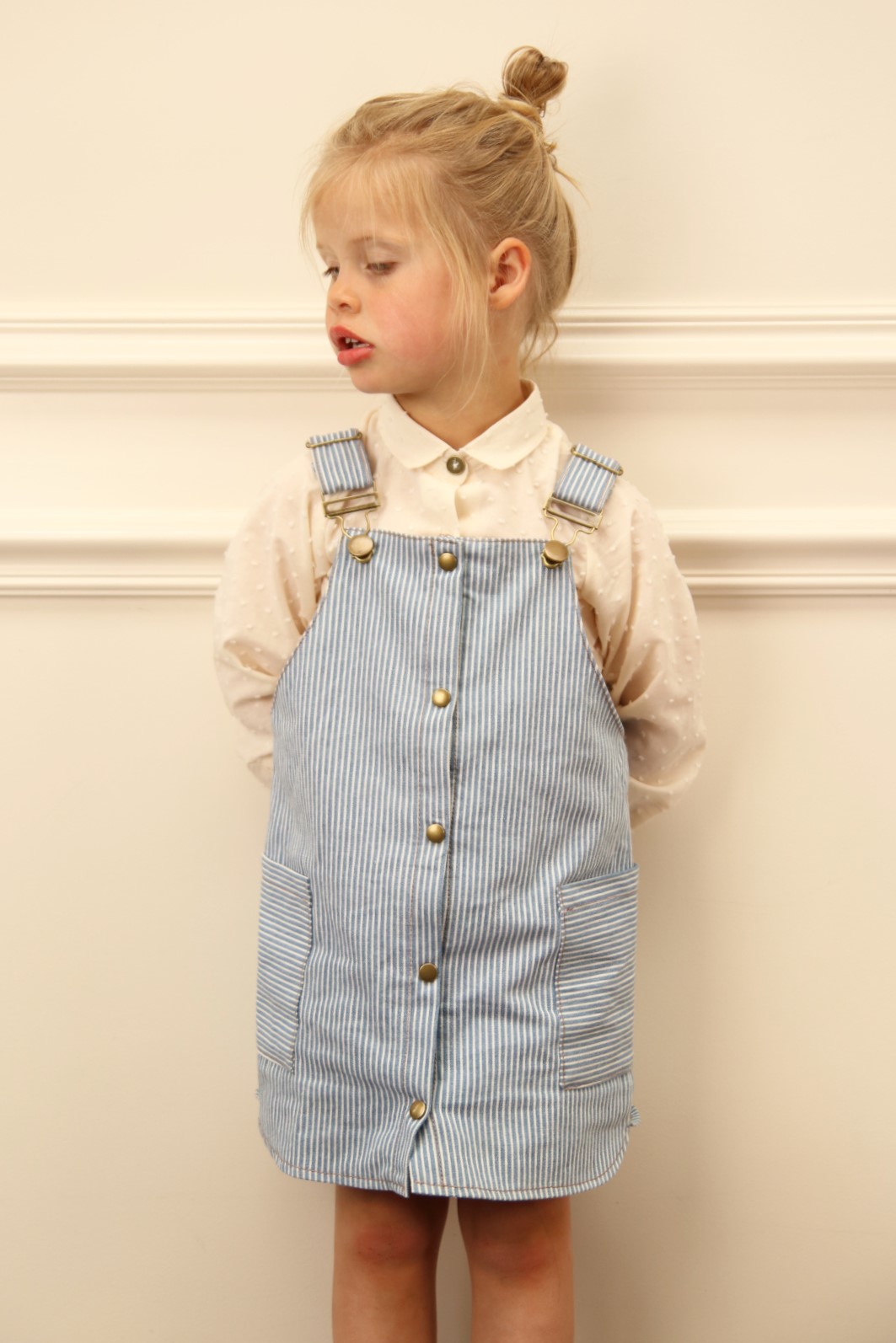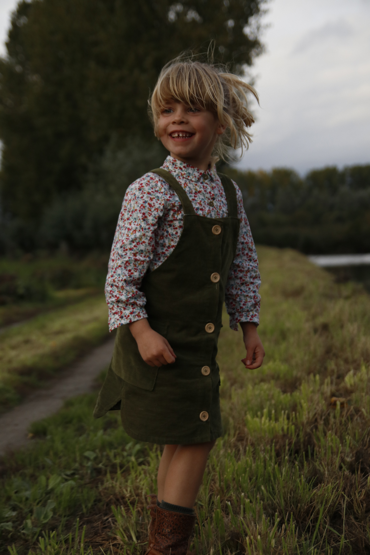 Collette is een patroon voor het maken van een overgooijurk/ salopettejurk voor meisjes (92-152) en dames (30-50). Het patroon van de Colette werd ontworpen voor (stevigere) niet-elastische stoffen zoals corduroy, jeans, canvas, katoen,…
