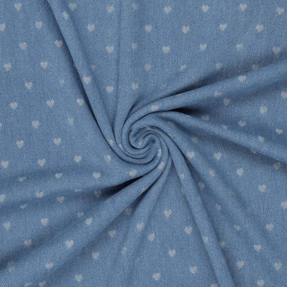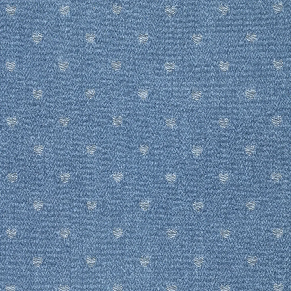 Met denim jacquard mix met hartjes kies je voor een hoogwaardige, karaktervolle stof die stoer design combineert met een liefdevol detail. Perfect voor unieke creaties die comfort, stijl en een subtiele knipoog samenbrengen.