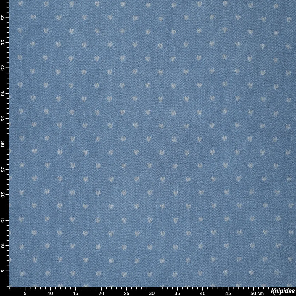 Denim jacquard mix met hartjes – stoere stof met liefdevol detail