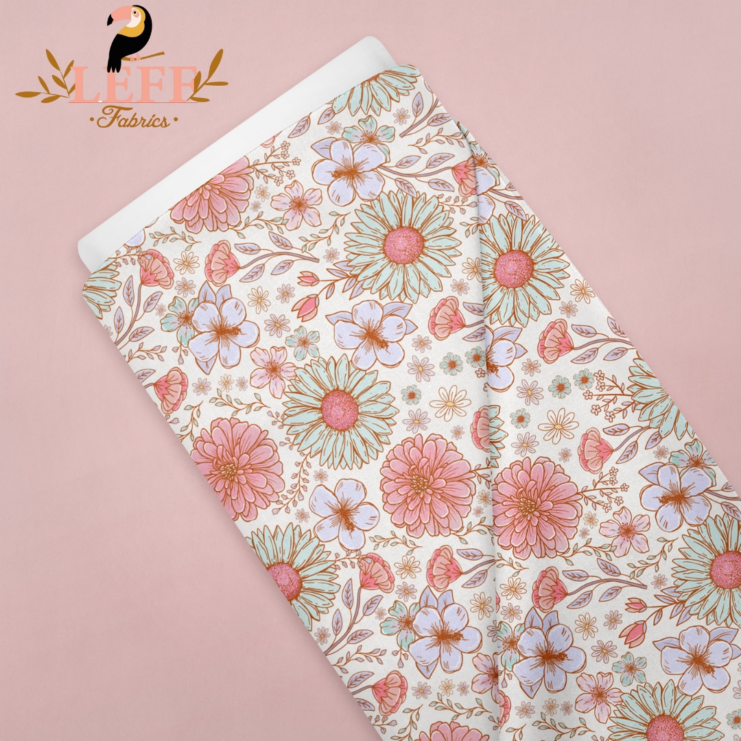 Ontdek de subtiele charme van ons Flowergarden Pastel design, gedrukt op een soepele jersey stof. Deze romantische bloemenprint, uitgevoerd in zachte pastelkleuren zoals lila, poederroze, mintgroen en lichtblauw, brengt rust en elegantie in elk kledingstuk of project.