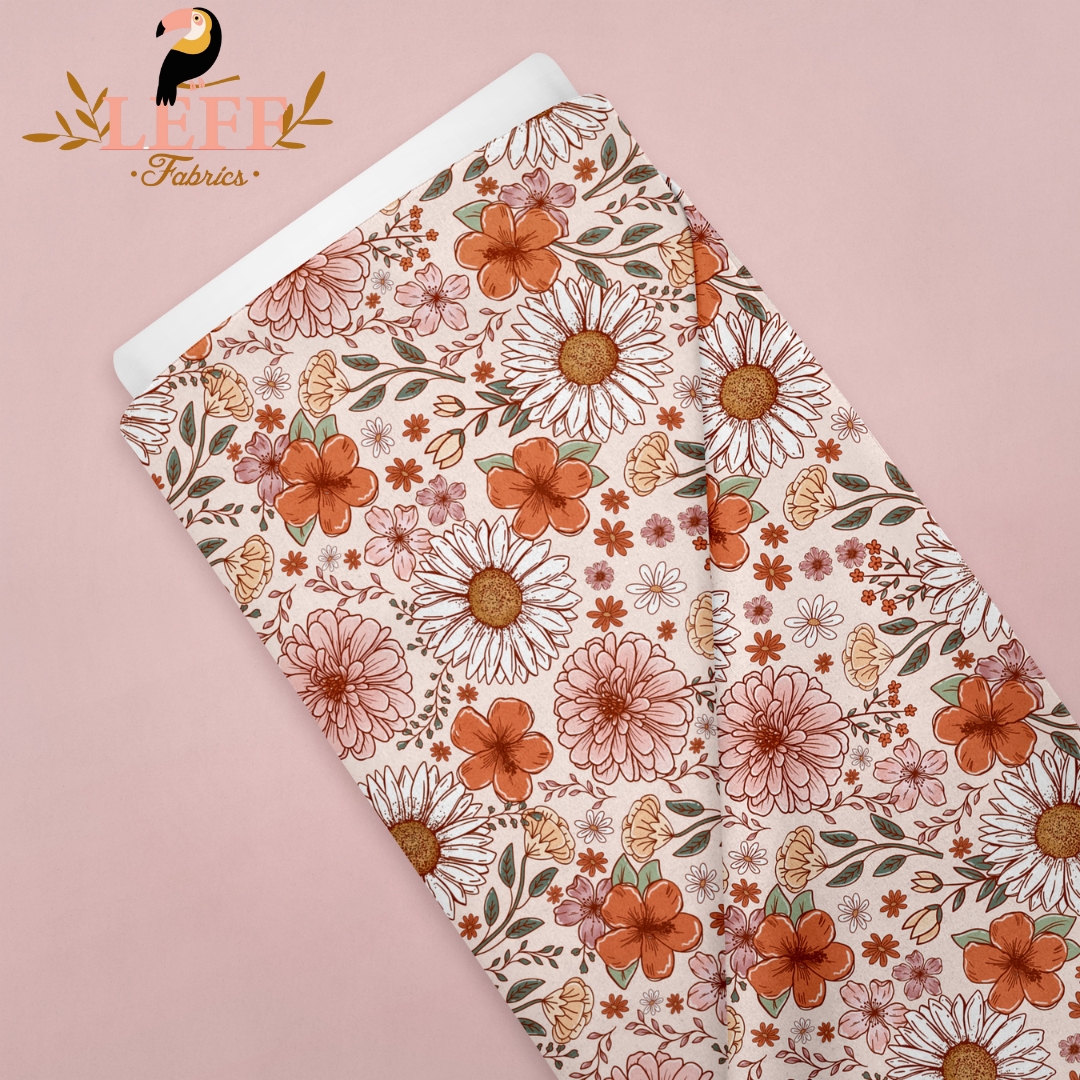 Het Flowergarden Design is een speelse en romantische bloemenprint, geïnspireerd op een bloeiende zomertuin. Denk aan kleurrijke bloesems, fijne bladeren en een harmonieus kleurenpalet dat elke creatie een frisse en elegante uitstraling geeft.
