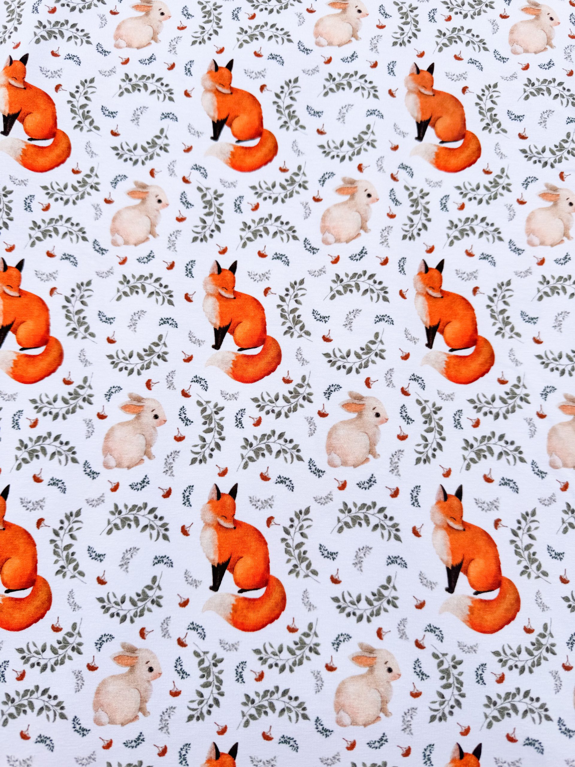 Laat de magie van het bos tot leven komen met onze Forest Friends jersey. Deze zachte, rekbare tricotstof is bedrukt met lieve vosjes en konijntjes op een frisse witte achtergrond, perfect voor baby- en kinderkleding, T-shirts, jurkjes of accessoires vol vrolijkheid. De soepele stof voelt heerlijk zacht aan op de huid en beweegt comfortabel mee, ideaal voor speelse en comfortabele outfits.