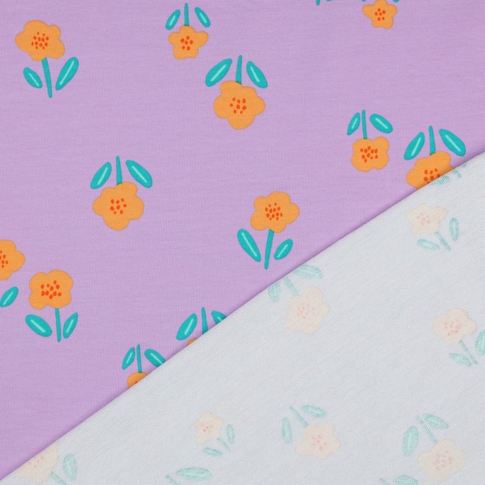 Frenchterry lavendel met bloemetjes – zachte, comfortabele stof met romantische uitstraling