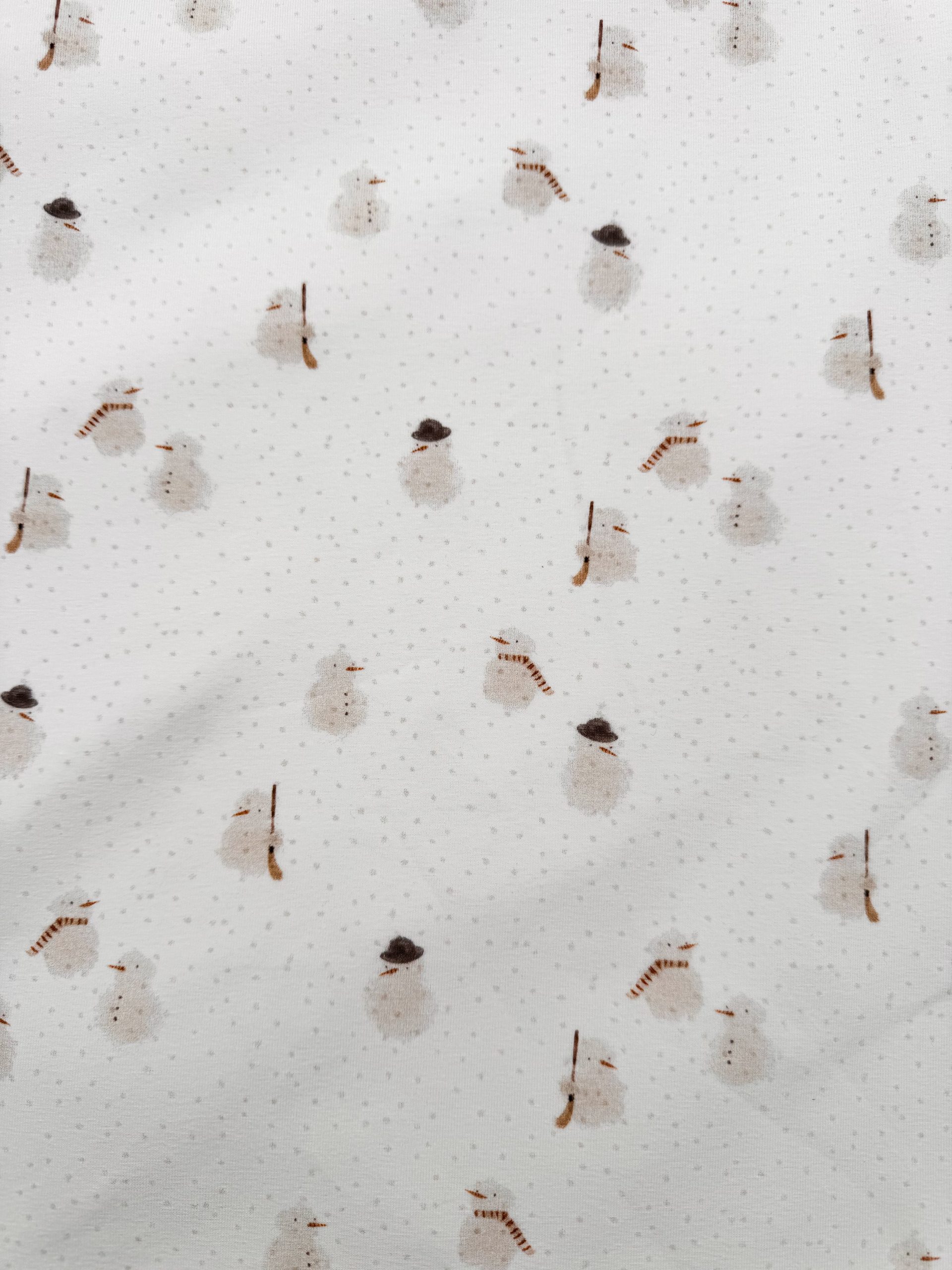 Breng winterplezier tot leven met onze Frosty Friends jersey. Deze zachte, rekbare tricotstof is bedrukt met lieve, kleine sneeuwpoppen, perfect voor baby- en kinderkleding, T-shirts, jurkjes of pyjama’s die warmte en vrolijkheid combineren. De soepele stof voelt heerlijk zacht aan op de huid en beweegt comfortabel mee bij elke winterse activiteit.