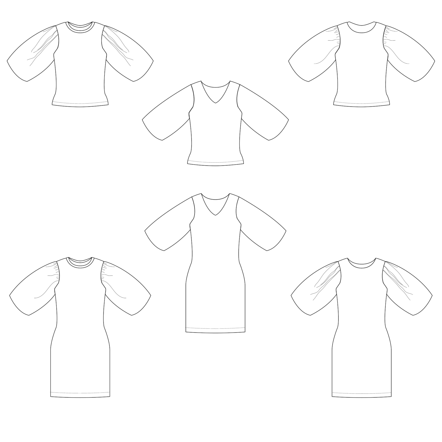 Ook voor de mouwen zijn verschillende opties voorzien: een bisschopmouw, een ballonmouw met plooien aan de schouder en een ballonmouw met rimpels aan de schouder.