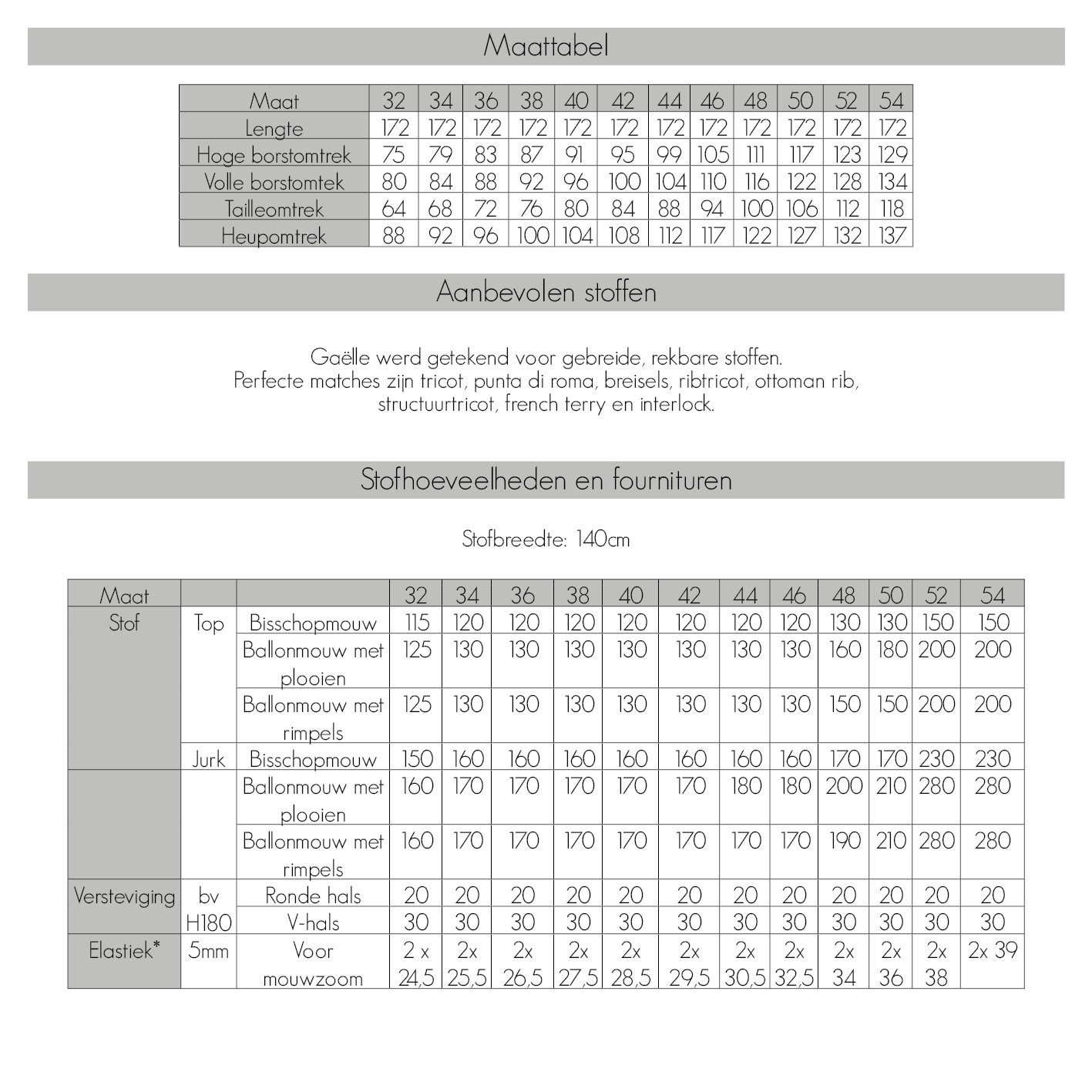 -het patroon afgedrukt op 2 A0 pagina’s in de maten 32, 34, 36, 38, 40, 42, 44, 46, 48, 50, 52 en 54