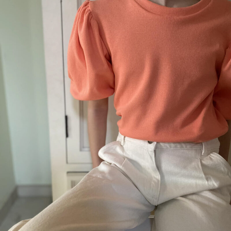 De mouwen worden afgewerkt met een elastiek in de zoom.