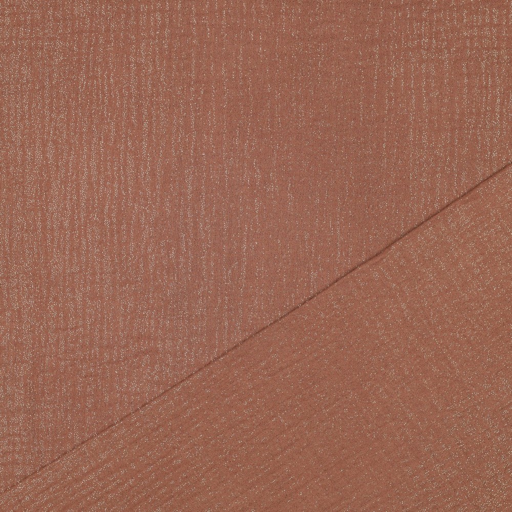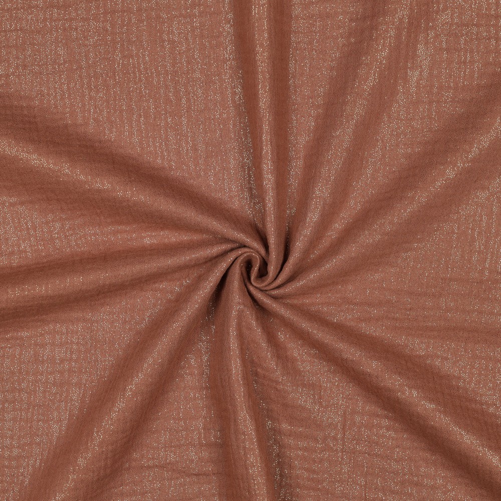 Maak kennis met Cognac Shine Muslin – een luxe hydrofiele stof in een rijke cognackleur met een subtiele, elegante glans. Deze zachte, luchtige muslin combineert comfort met een chique, moderne uitstraling, waardoor hij ideaal is voor kleding, doeken, accessoires en baby-items met een stijlvolle twist.
