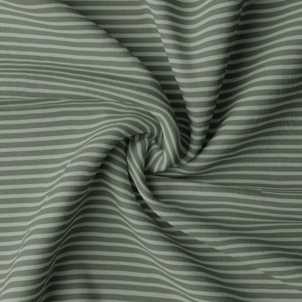 Simpel, stijlvol en altijd goed – dat is onze Green Stripe jersey. De fijne, smalle strepen in een frisse groentint geven deze soepele tricotstof een moderne en sportieve uitstraling. Perfect voor T-shirts, jurken, babykleding of comfortabele basics die moeiteloos te combineren zijn.