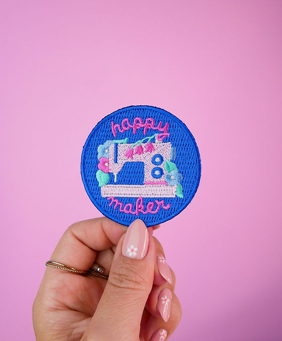 deze patch is jullie officiële symbool! Geborduurd met een bloemrijke naaimachine, viert het de vreugde van zelf creëren. Want een handgemaakte wereld is een zachtere wereld 🎀💙🌸. Pssst, het coole is dat je hem simpelweg met een strijkijzer kunt bevestigen, makkelijker kan niet!