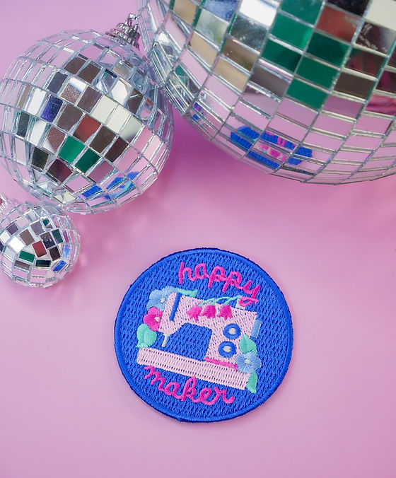 ✨ Strijkpatch met Happy Maker ontwerp, naaimachine en bloemen