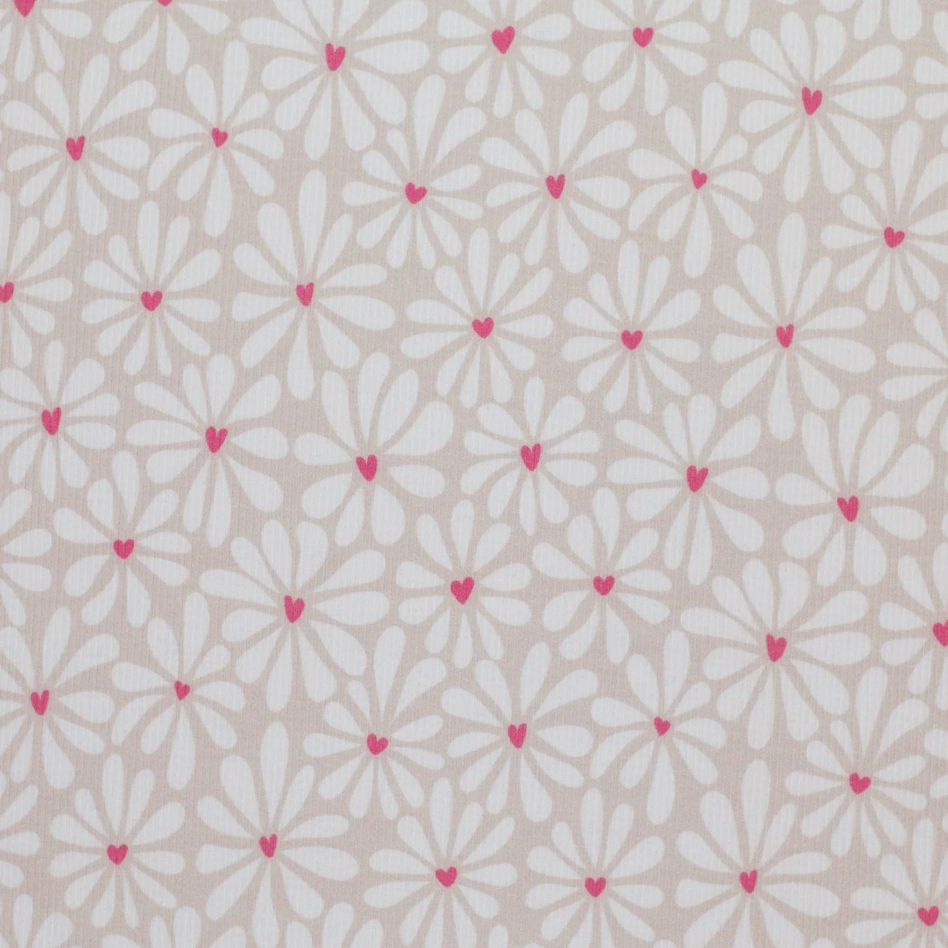 De schattige hartjesbloemenprint geeft een speelse, romantische touch aan tops, jurkjes, rokjes en kinderkleding. De ribstructuur voegt subtiele textuur toe, waardoor elk ontwerp nét dat beetje extra karakter krijgt.