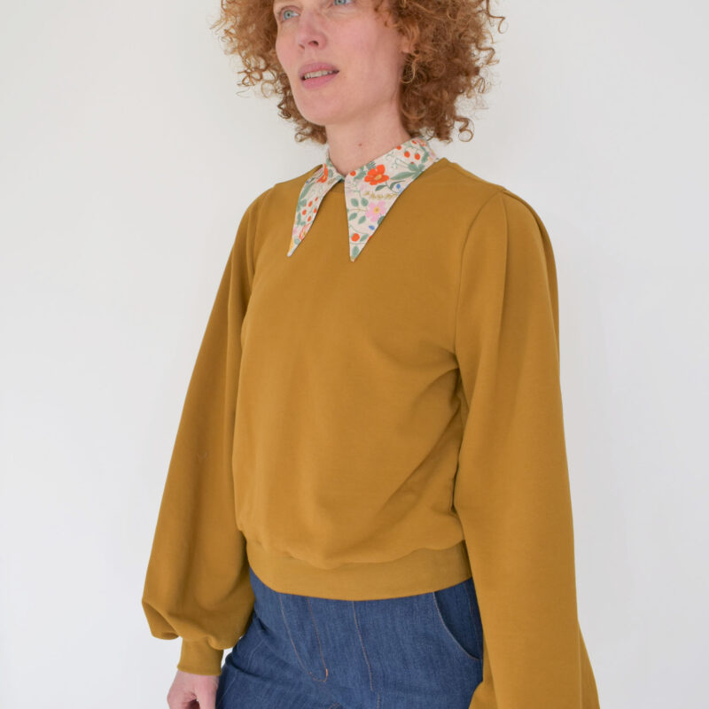 We voorzien een iets hogere halslijn om mooi aan te sluiten bij de Harriet kragen.