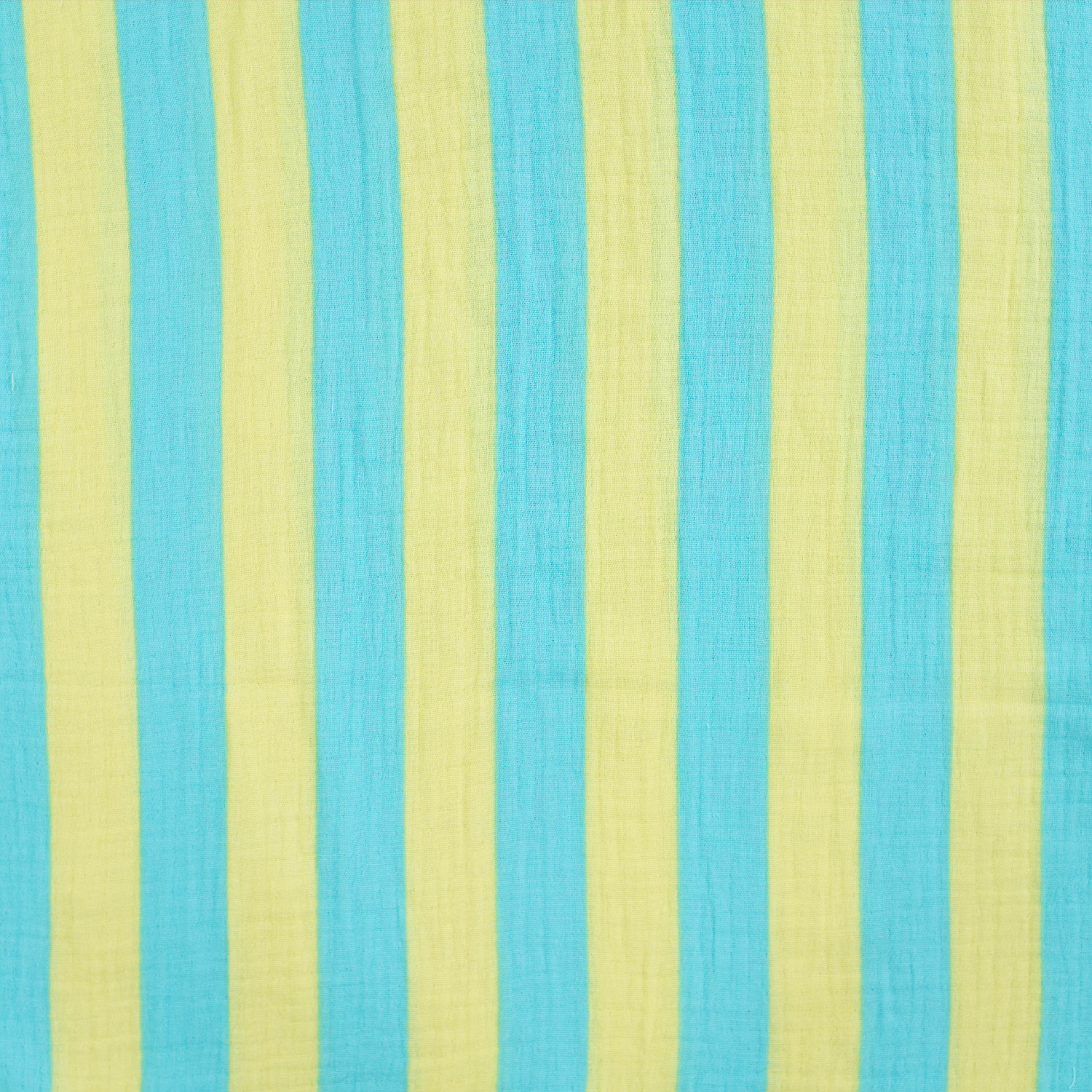 Deze hydrofiel met blauwe en aqua groene strepen heeft een frisse en zomerse uitstraling. De combinatie van verschillende blauwtinten en aqua groen zorgt voor een levendig, maar toch rustig streepdessin dat perfect past bij luchtige kleding.