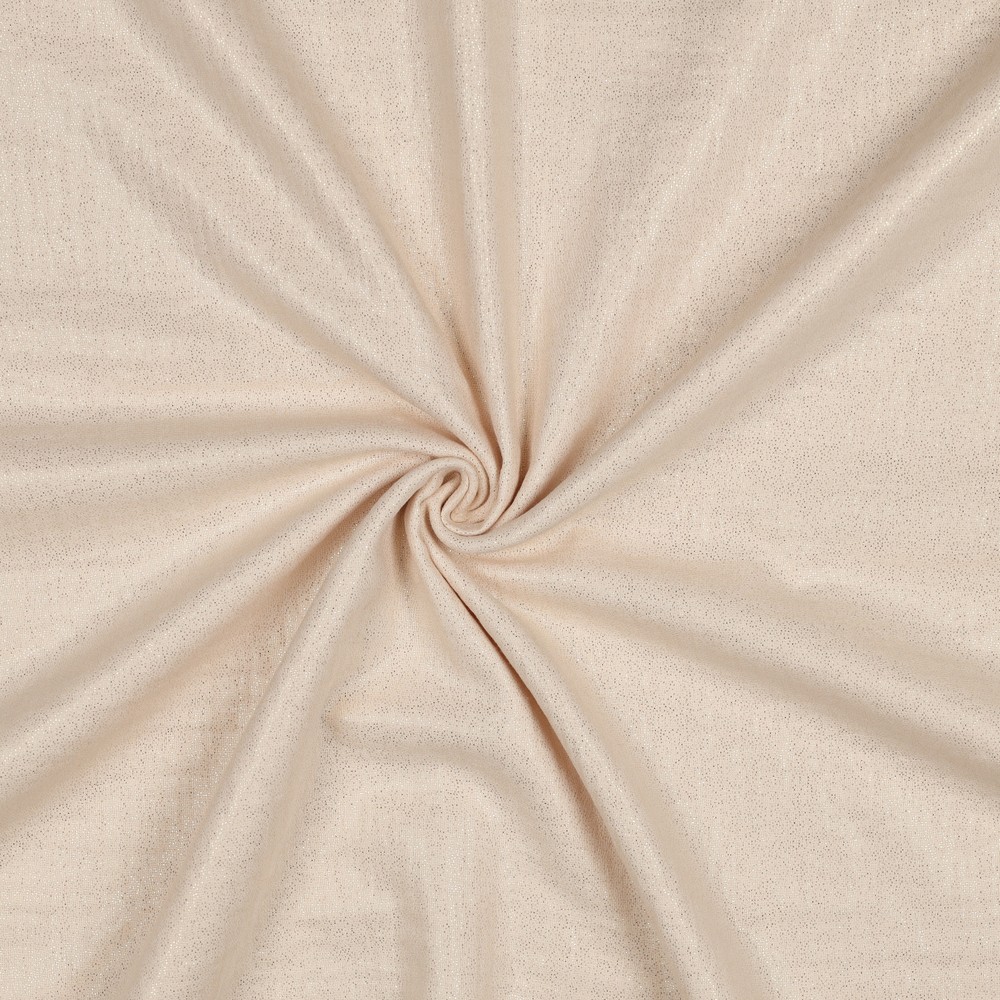 Deze beige hydrofielstof met subtiele glans is de perfecte combinatie van luchtigheid en verfijning. De karakteristieke, zachte kreukstructuur van hydrofiel (ook wel mousseline genoemd) zorgt voor een heerlijk licht en ademend gevoel, terwijl de glanzende draadjes een chique, sprankelend accent toevoegen.
