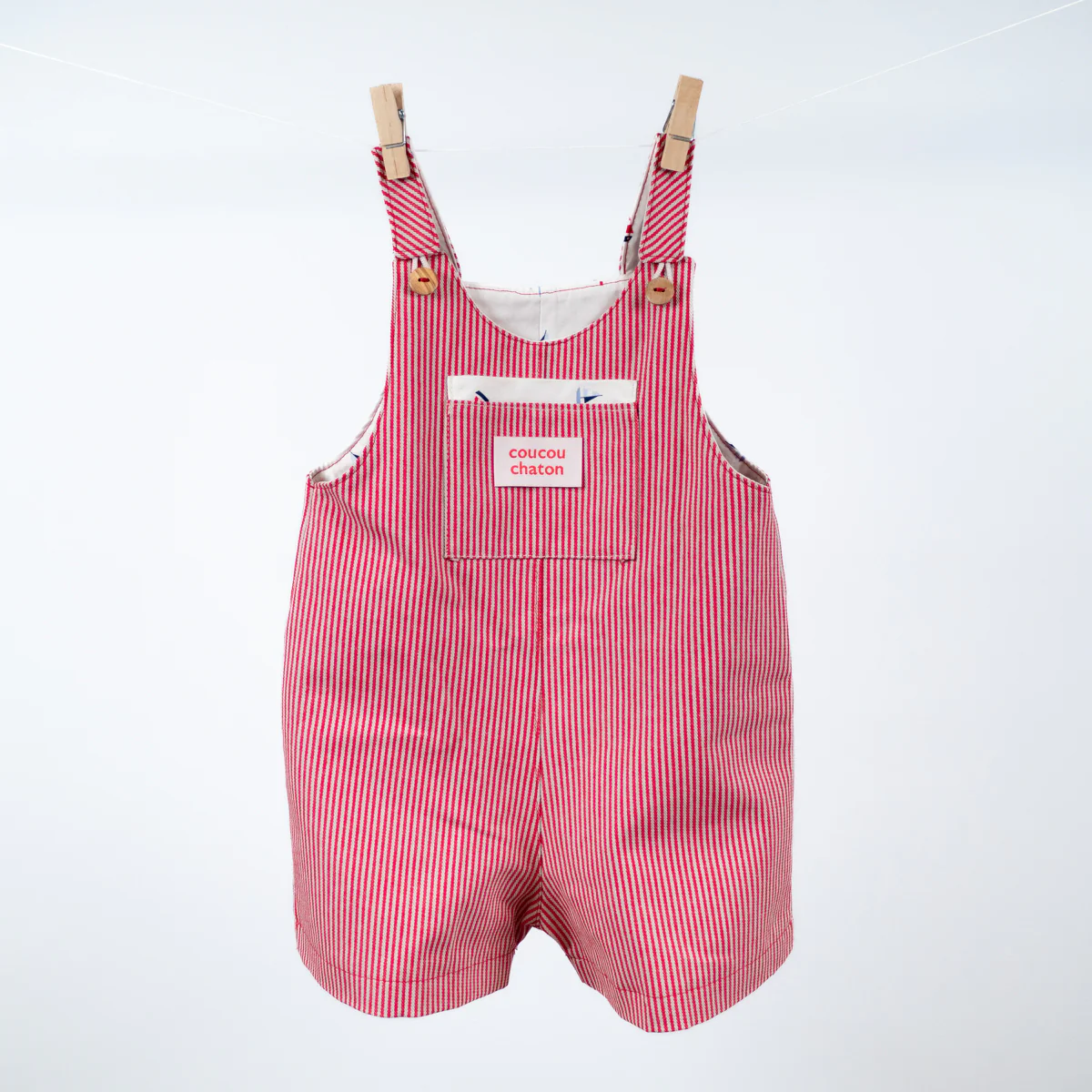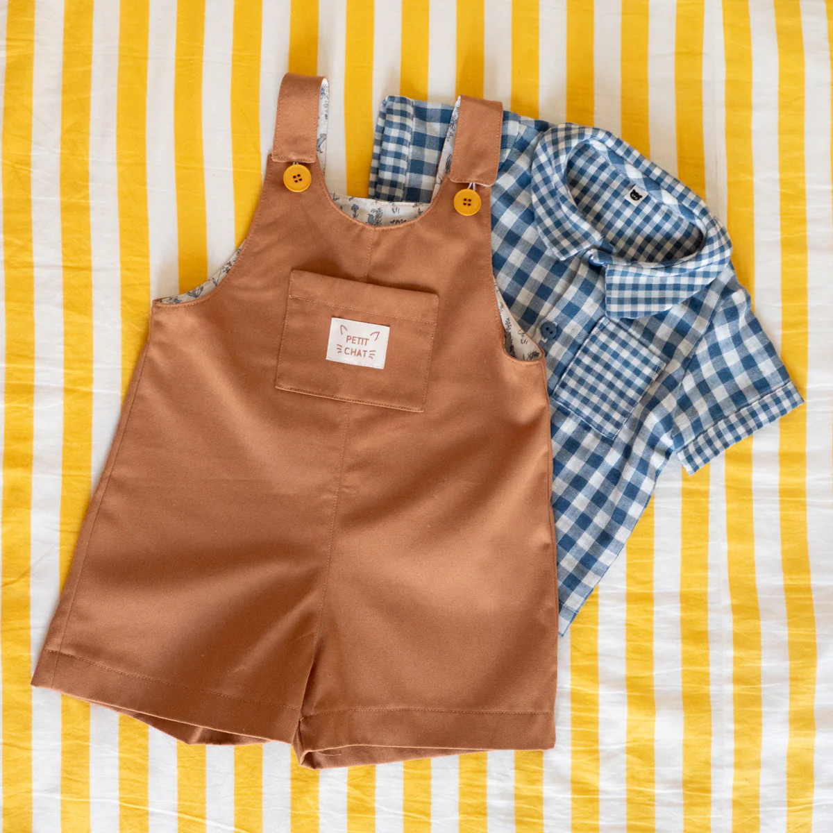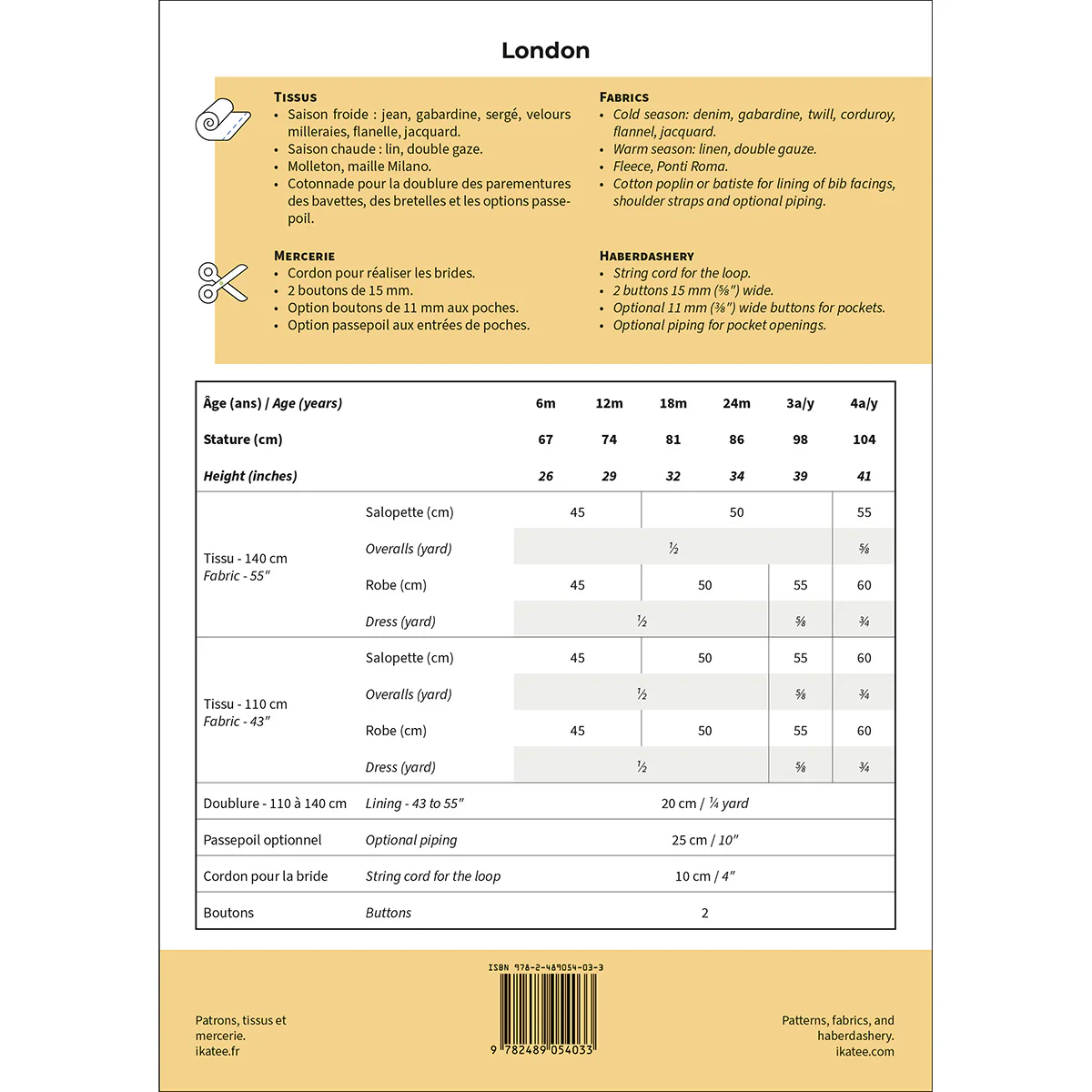 London is een patroon voor unisex korte tuinbroeken en een tuinbroekjurk voor baby’s. De borststukken aan de voor- en achterkant, evenals de schouderbandjes, zijn gevoerd. Er zijn verschillende opties voor zakken beschikbaar.