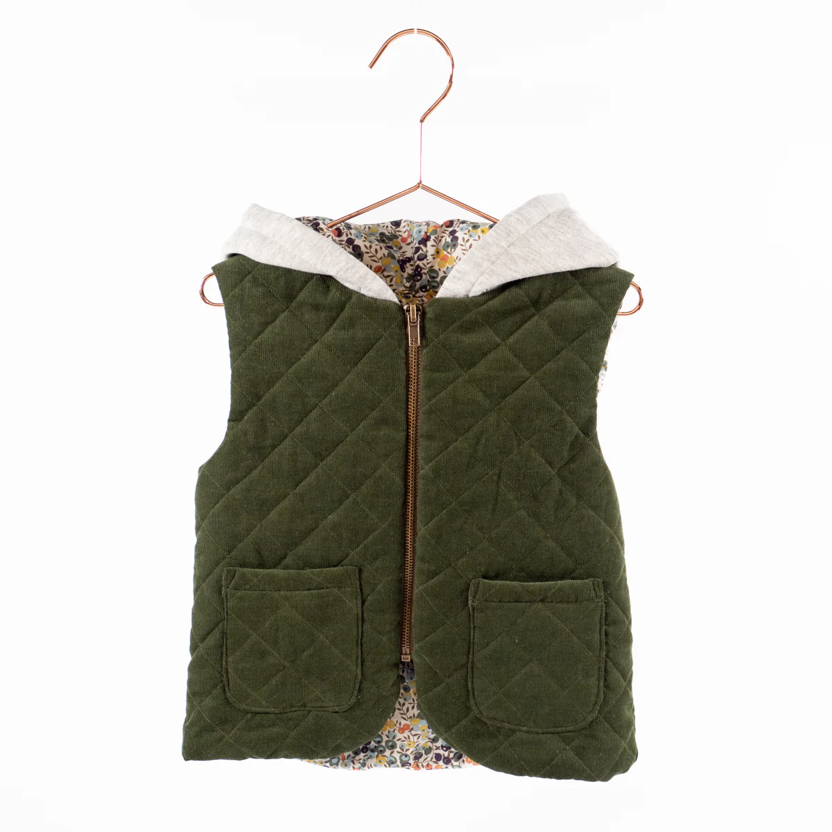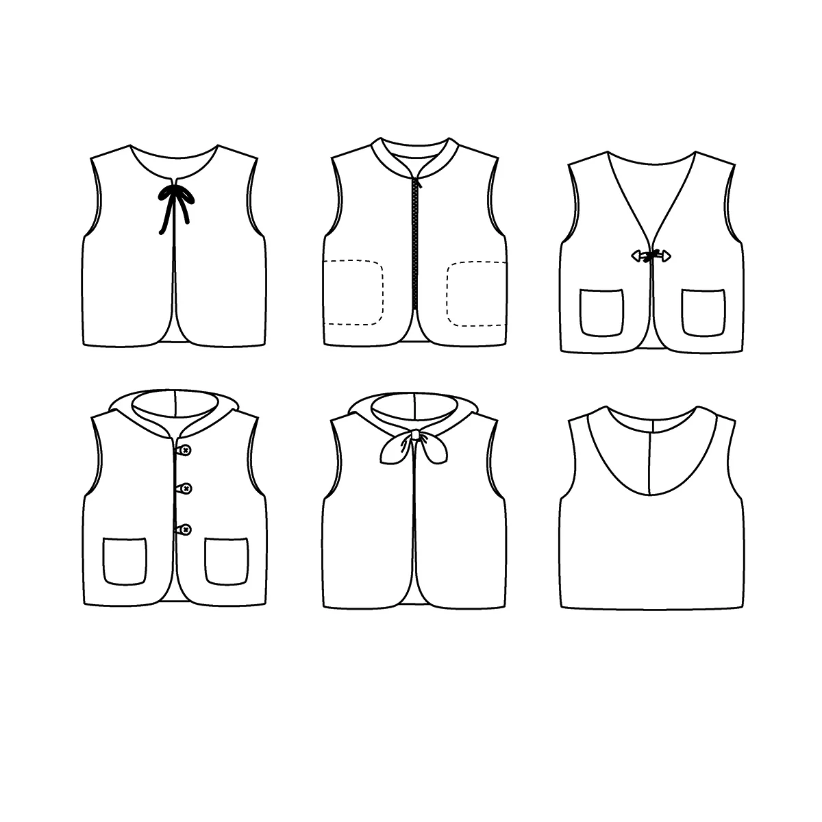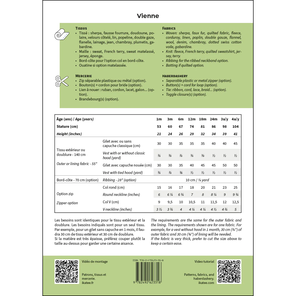 Vienne is een unisex mouwloos babyvestje patroon. Het model is volledig gevoerd en kan, afhankelijk van de sluiting, aan beide kanten gedragen worden. Dit patroon biedt bovendien een breed scala aan mogelijkheden, zodat je het vestje naar eigen smaak kunt aanpassen. Je kunt kiezen uit vijf halslijnen (V-hals, ribkraag, ronde hals, klassieke capuchon, capuchon met strik), twee soorten zakken (opgestikt, aan de zijkant) en vier soorten sluitingen (knoop + bandje, strik, knevelsluiting, rits).