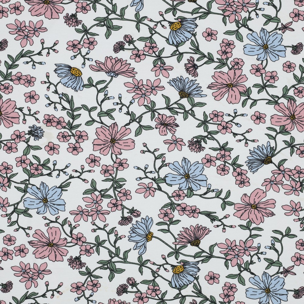 Deze katoenen jersey met blossom garden print heeft een zachte en dromerige uitstraling. Het fijne bloesemdessin zorgt voor een frisse, romantische look die perfect past bij zowel voorjaar als zomer.