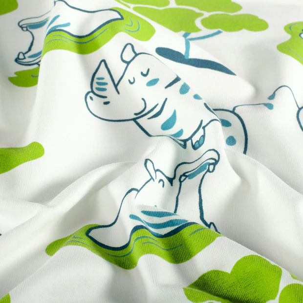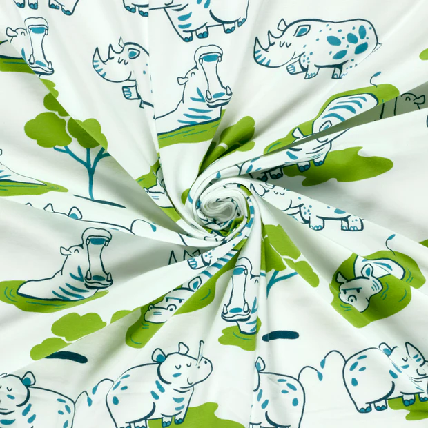 Katoenen jersey Safari Rhino Fun – speels en avontuurlijk