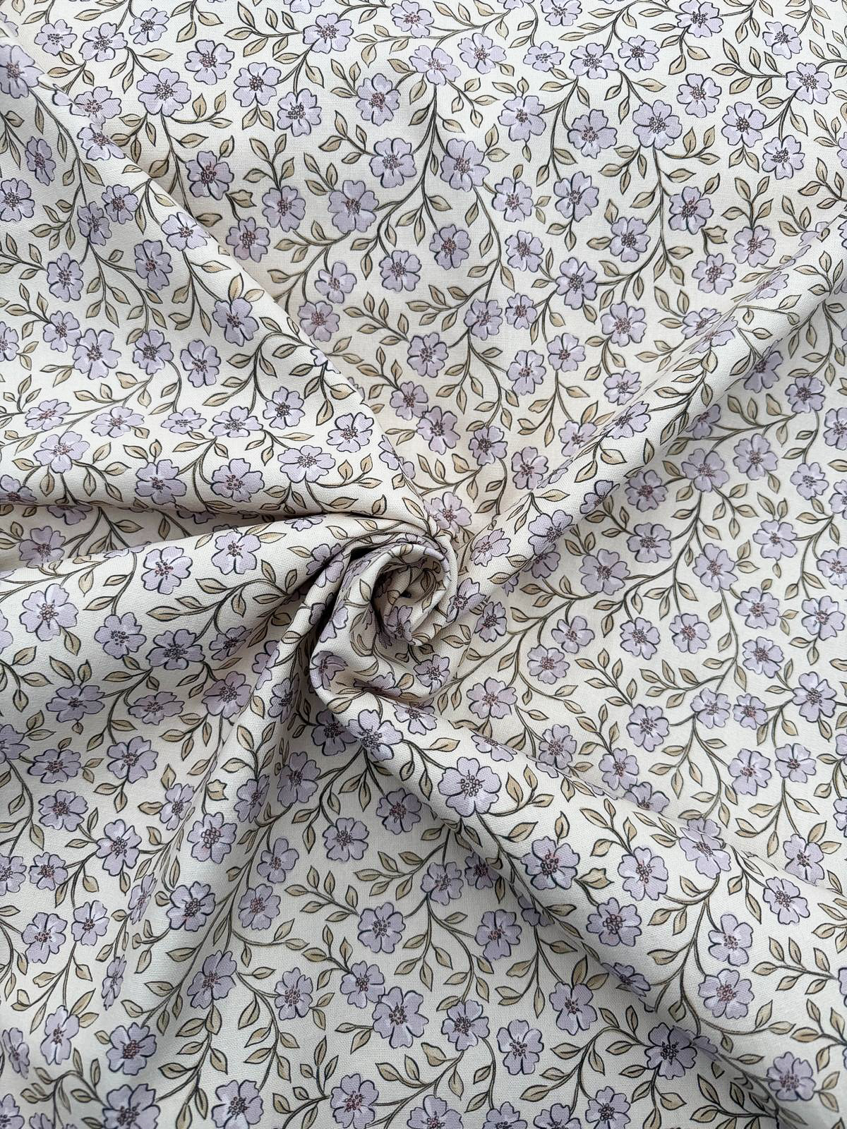 Lilac Breeze denim twill is een unieke en elegante denim twill stof waarin stevigheid en een zachte, romantische uitstraling perfect samenkomen. De subtiele lila bloemenprint op een lichte, neutrale ondergrond geeft deze denim twill een frisse, vrouwelijke en tijdloze look met een vleugje vintage charme.