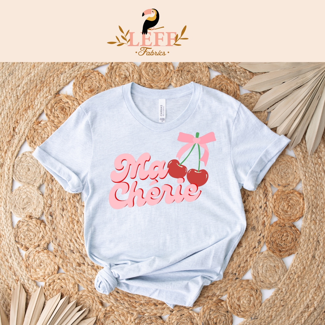 Breng een vleugje Parijse flair naar je creaties met deze romantische transfer met de tekst “Ma Chérie”, omlijst met schattige kersjes. Of het nu voor een kind, je beste vriendin of jezelf is – dit ontwerp straalt liefde, speelsheid en stijl uit in één oogopslag.