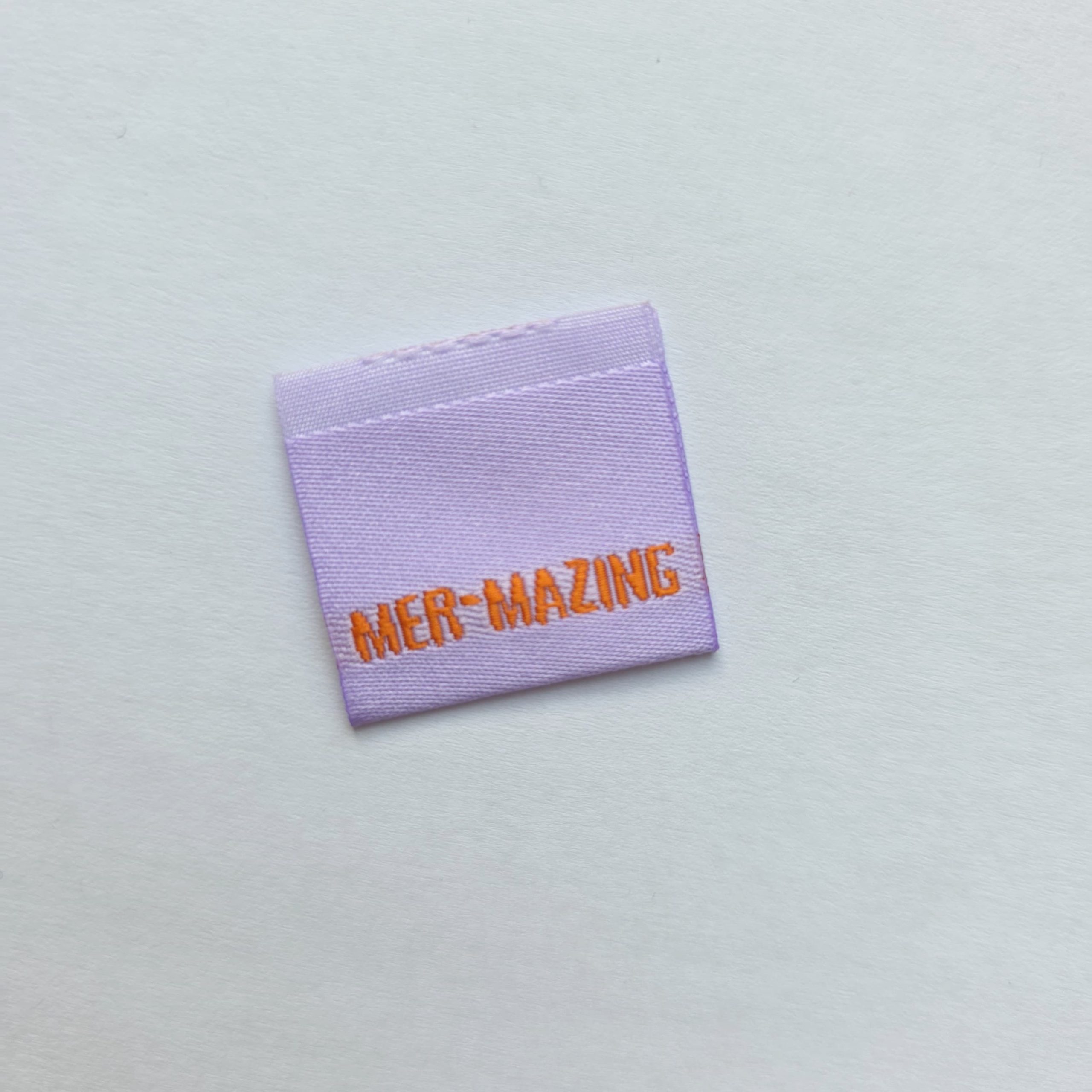 De tekst “mer-mazing” — een speelse combinatie van mermaid en amazing — is perfect voor zomerse, kleurrijke en dromerige ontwerpen. Het label is zacht, flexibel en duurzaam, zodat het mooi blijft, zelfs na veelvuldig wassen en dragen.