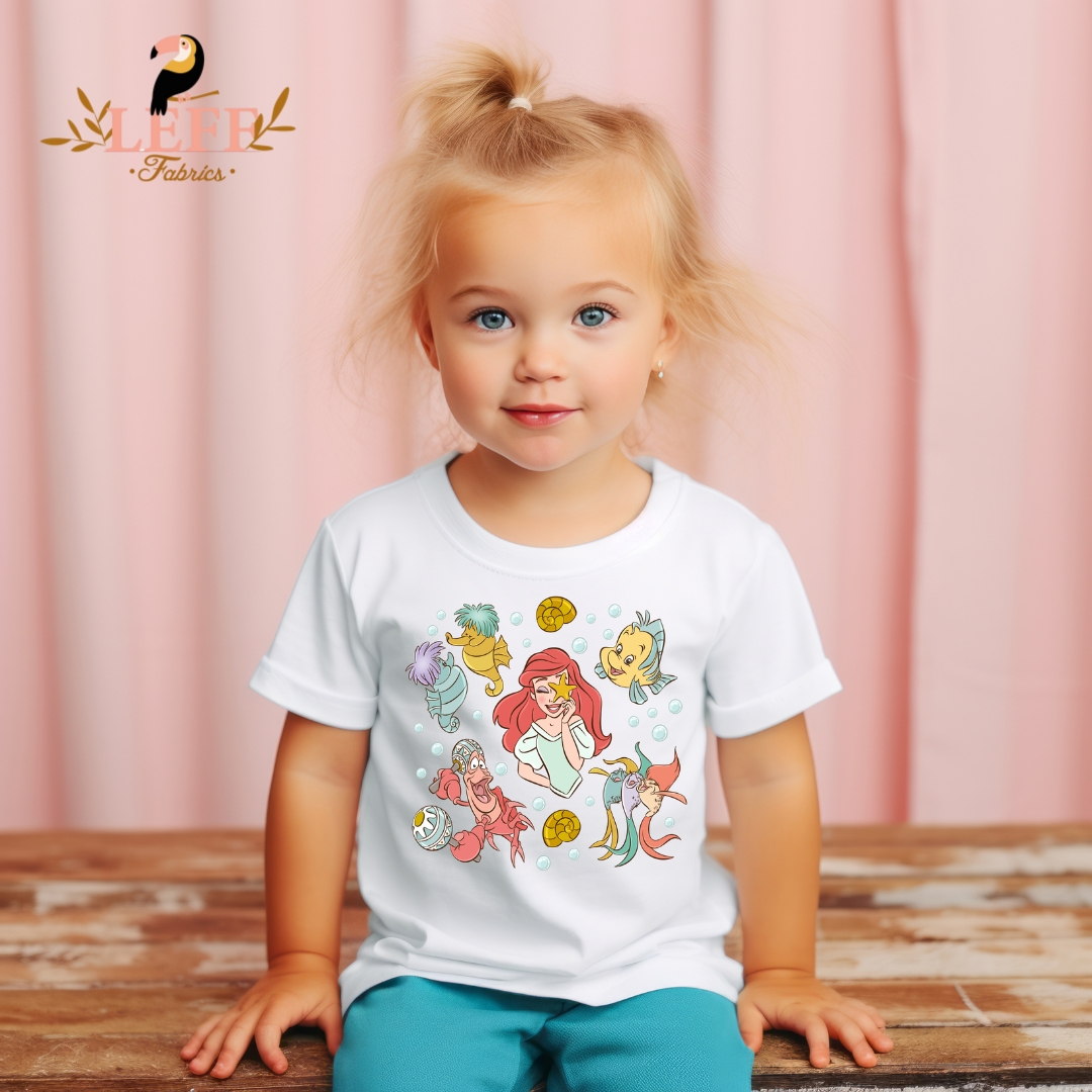 Maak van elk kledingstuk een feest met onze Mermaid Party strijktransfer! Deze vrolijke print vol zeemeerminnen, schelpen en glitterdetails tovert basic kledingstukken in een handomdraai om tot echte eyecatchers. Perfect voor kinderen die dol zijn op alles wat glanst, sprookjesachtig is en onder water leeft.