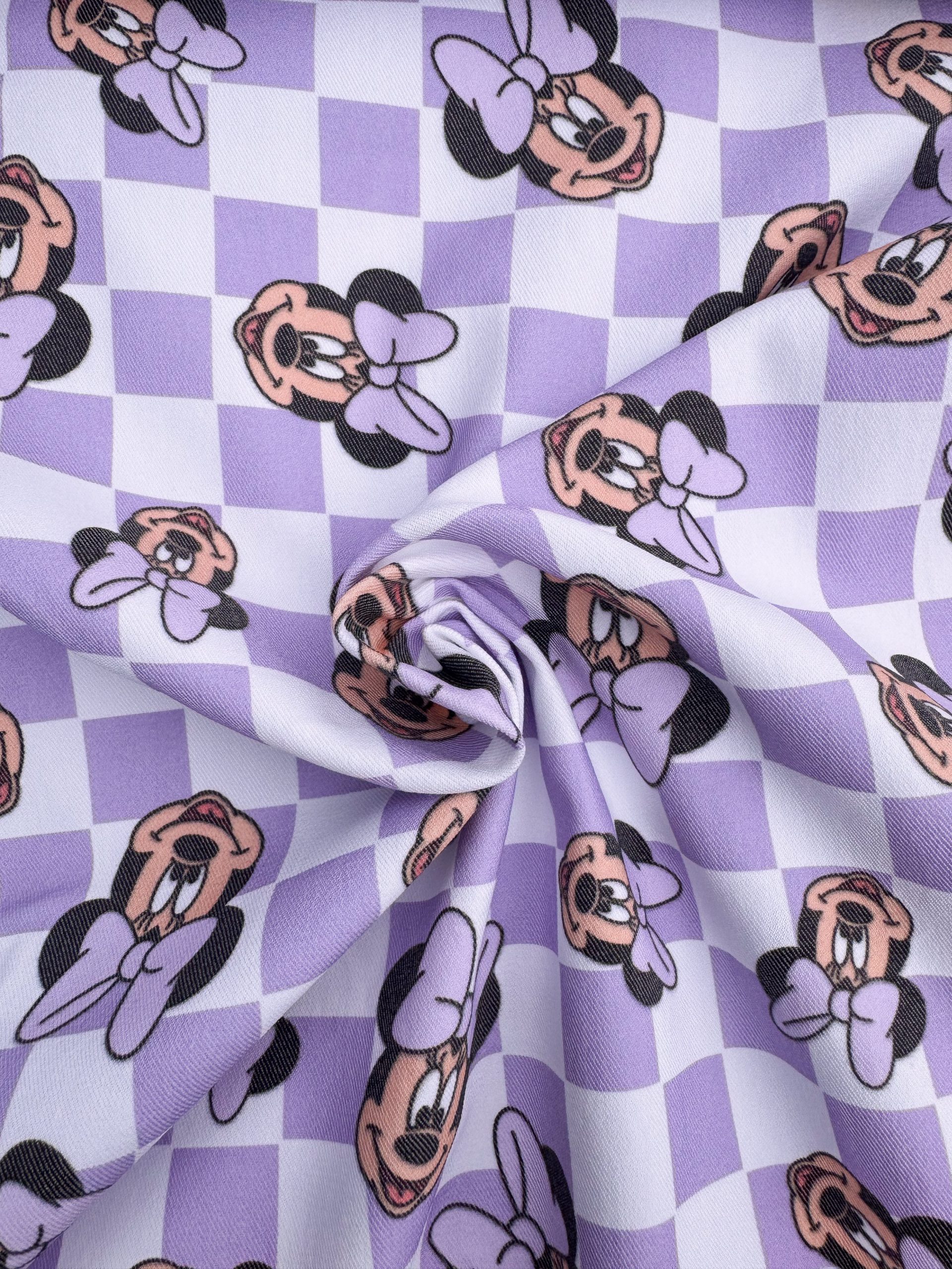 Onze denim twill met Minnie Mouse print brengt het beste van twee werelden samen: de robuuste uitstraling van denim en de vrolijke charme van Minnie. De stevige twill-kwaliteit maakt de stof ideaal voor kleding die tegen een stootje kan, terwijl de iconische Minnie-details zorgen voor een speelse en herkenbare twist.