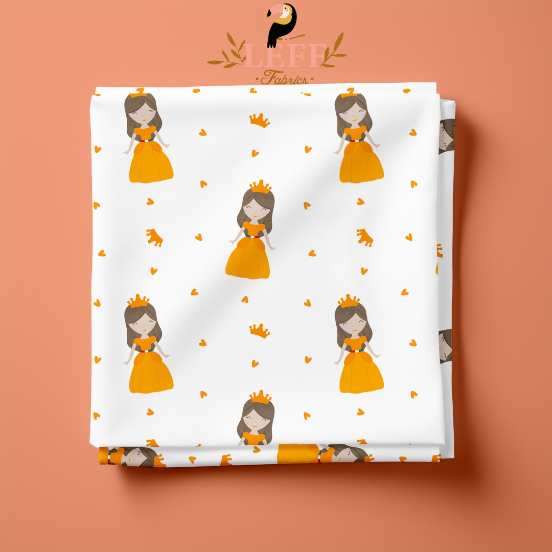 Onze oranje prinsessen jersey stof is reactief geprint voor heldere kleuren die langdurig mooi blijven. De levendige oranje tinten, gecombineerd met betoverende prinsessenmotieven, maken deze stof perfect voor het creëren van magische outfits. Of je nu kleding maakt voor een speciale gelegenheid of een speelse look zoekt, deze zachte, ademende en stretchy stof zorgt voor ultiem comfort en stijl.