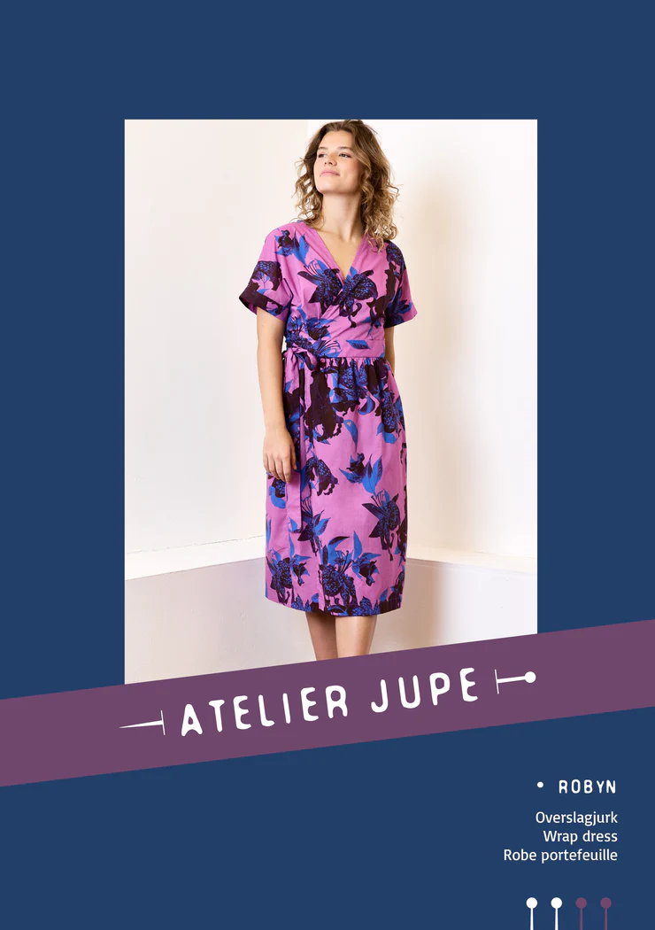 Met haar knielange rok is deze jurk veelzijdig genoeg voor zowel casual momenten als meer geklede gelegenheden. De Robyn overslagjurk is eenvoudig te naaien en makkelijk te stylen, waardoor dit patroon geschikt is voor naaisters van elk niveau. Een echte basisjurk die je eenvoudig chic of casual kunt dragen.