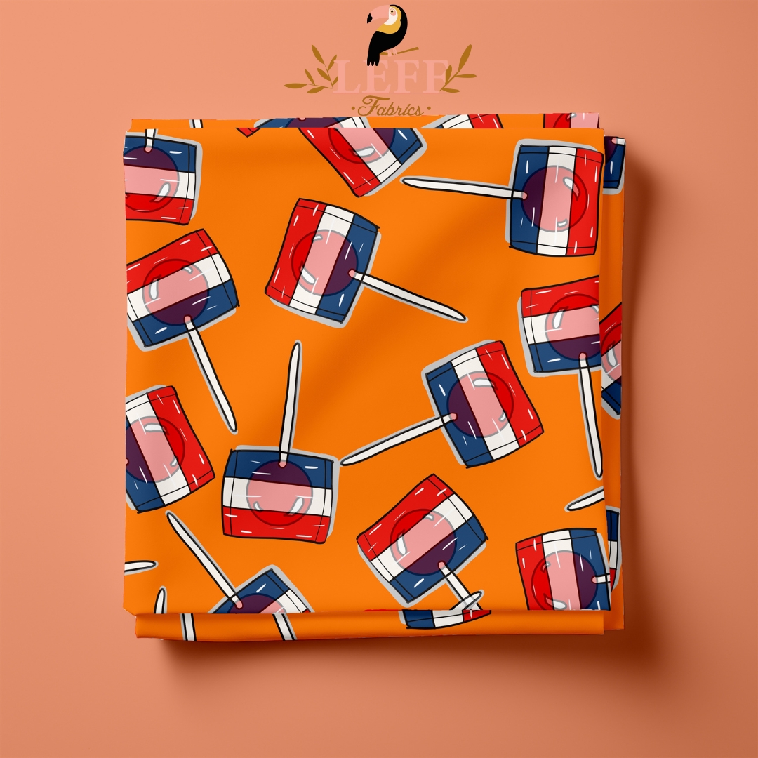Onze ronde lolly’s jersey stof, reactief geprint met een vrolijk rood-wit-blauw design, brengt speelsheid en kleur in je creaties. De stof is zacht, ademend en stretchend, waardoor het ideaal is voor het maken van t-shirts, jurkjes of accessoires met een unieke en feestelijke uitstraling. Het kleurrijke lolly-motief in de klassieke kleurencombinatie zorgt voor een frisse, jeugdig gevoel en blijft mooi, zelfs na meerdere wasbeurten.