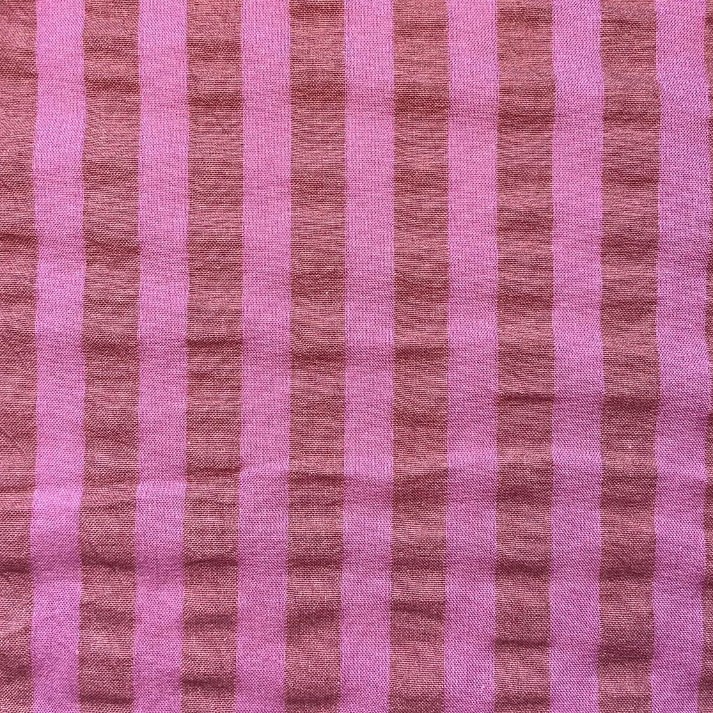 Ontdek de perfecte combinatie van comfort en stijl met onze gestreepte seersucker stof in Rosewood. De lichtgewicht, puckered textuur zorgt voor een luchtige feel, terwijl het subtiele streeppatroon een moderne, verfijnde uitstraling geeft. Perfect voor zomerse blouses, jurken of casual overhemden.