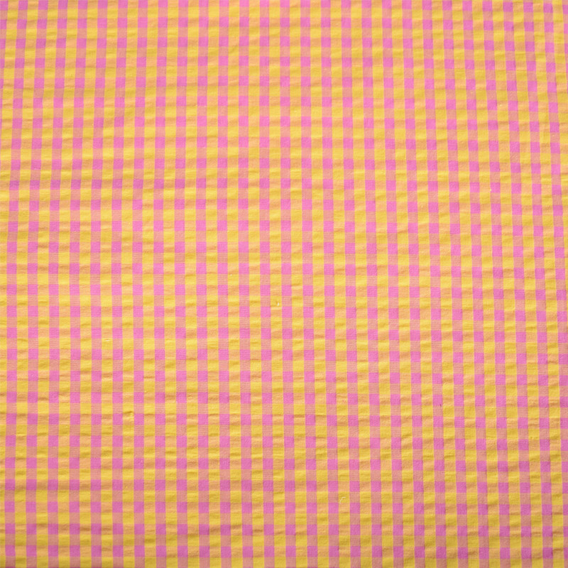 Met Seersucker ruitjes Yellow Candy kies je voor een comfortabele, ademende en vrolijke stof die perfect past bij zomerse creaties vol kleur en speelsheid.