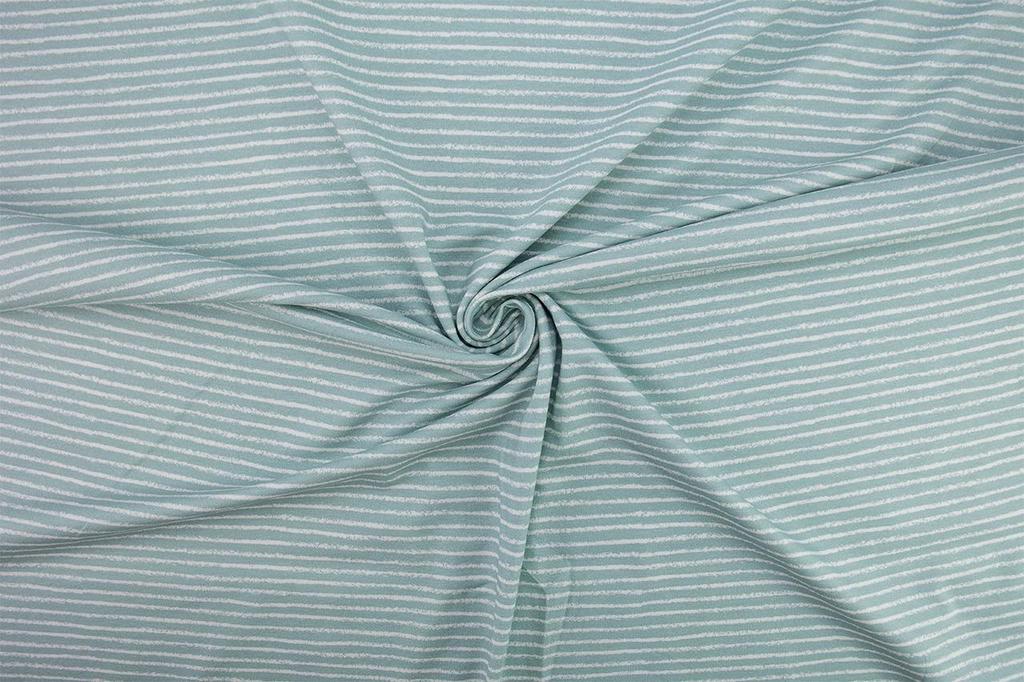 Jersey staat bekend om zijn zachtheid, ademend vermogen en lichte rek, wat zorgt voor een hoog draagcomfort. Dit maakt deze stof ideaal voor het maken van T-shirts, longsleeves, jurken, leggings, rompers, pyjama’s, kinderkleding en comfortabele loungewear. De subtiele streepjes geven elk kledingstuk net dat beetje extra detail, zonder de stof te druk te maken.
