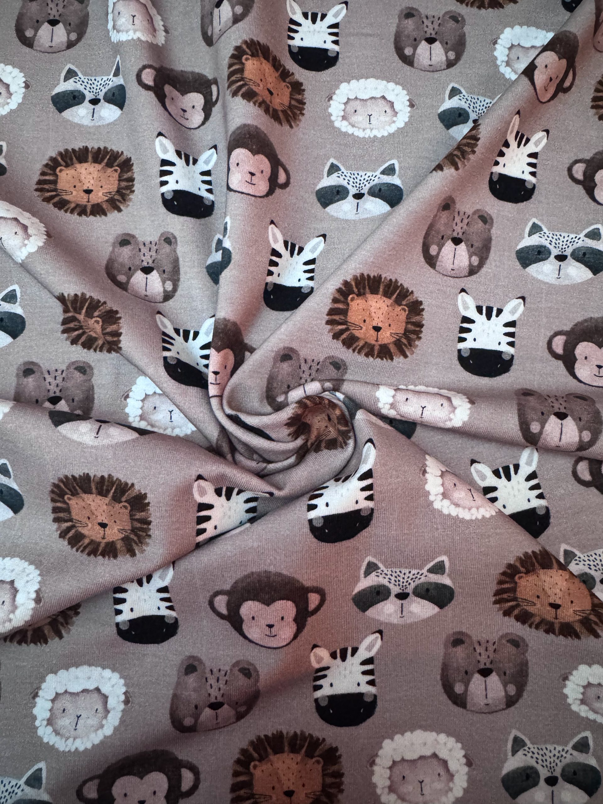 De dierenkoppenprint geeft de stof een speelse, vrolijke en fantasierijke uitstraling. Perfect voor kinderkleding, thema-outfits en unieke handmade creaties die nét even anders zijn. De stof laat zich mooi combineren met effen kleuren zoals crème, zwart, grijs, groen of tinten uit de print voor een harmonieus geheel.