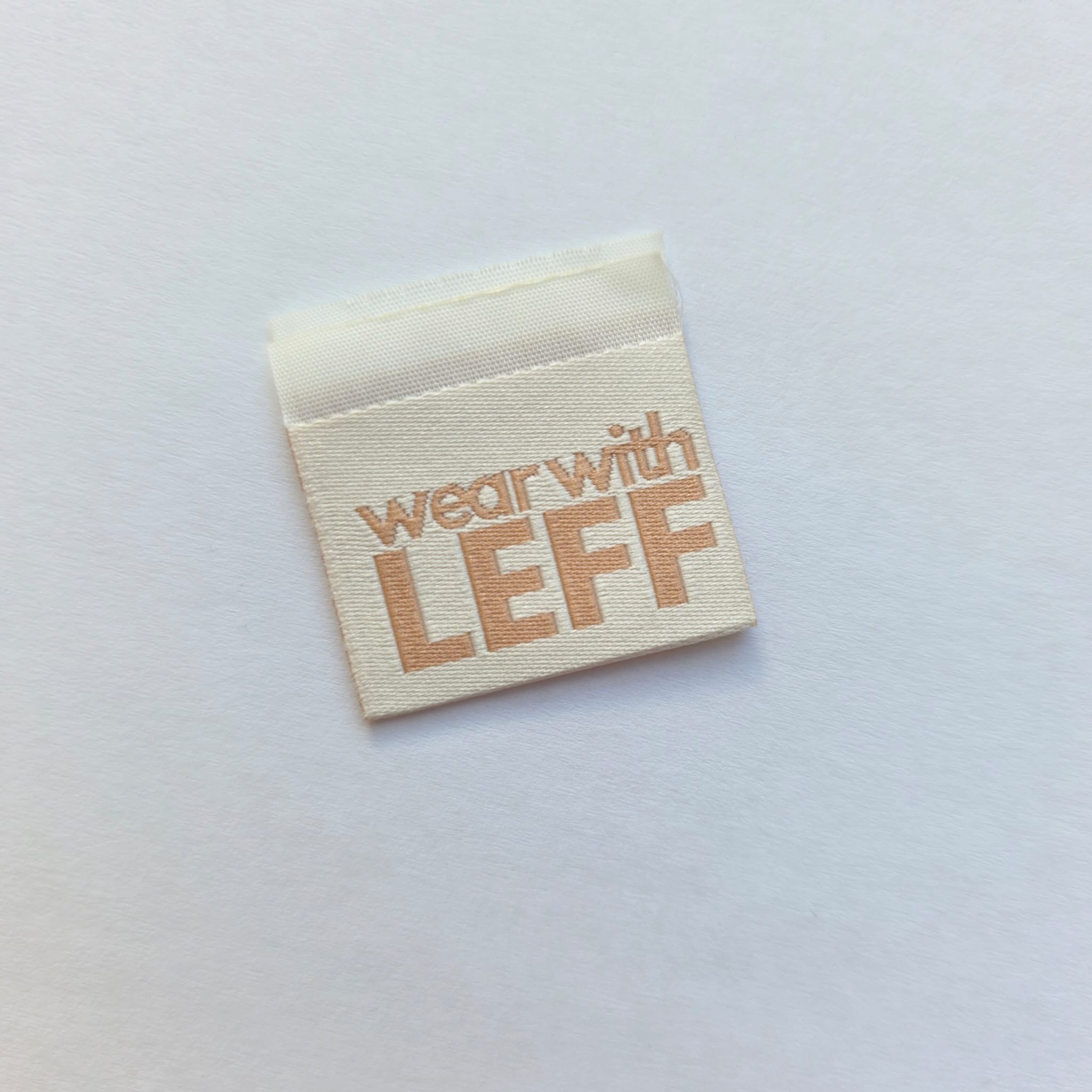 De neutrale beige tint past bij vrijwel elke stofkleur en stijl, waardoor dit label een veelzijdige keuze is voor al jouw projecten. De tekst “wear with leff” geeft een warm, persoonlijk accent en onderstreept de liefde en zorg waarmee je jouw stukken maakt. Het label is zacht, soepel en duurzaam, zodat het mooi blijft – ook na veelvuldig wassen en dragen.