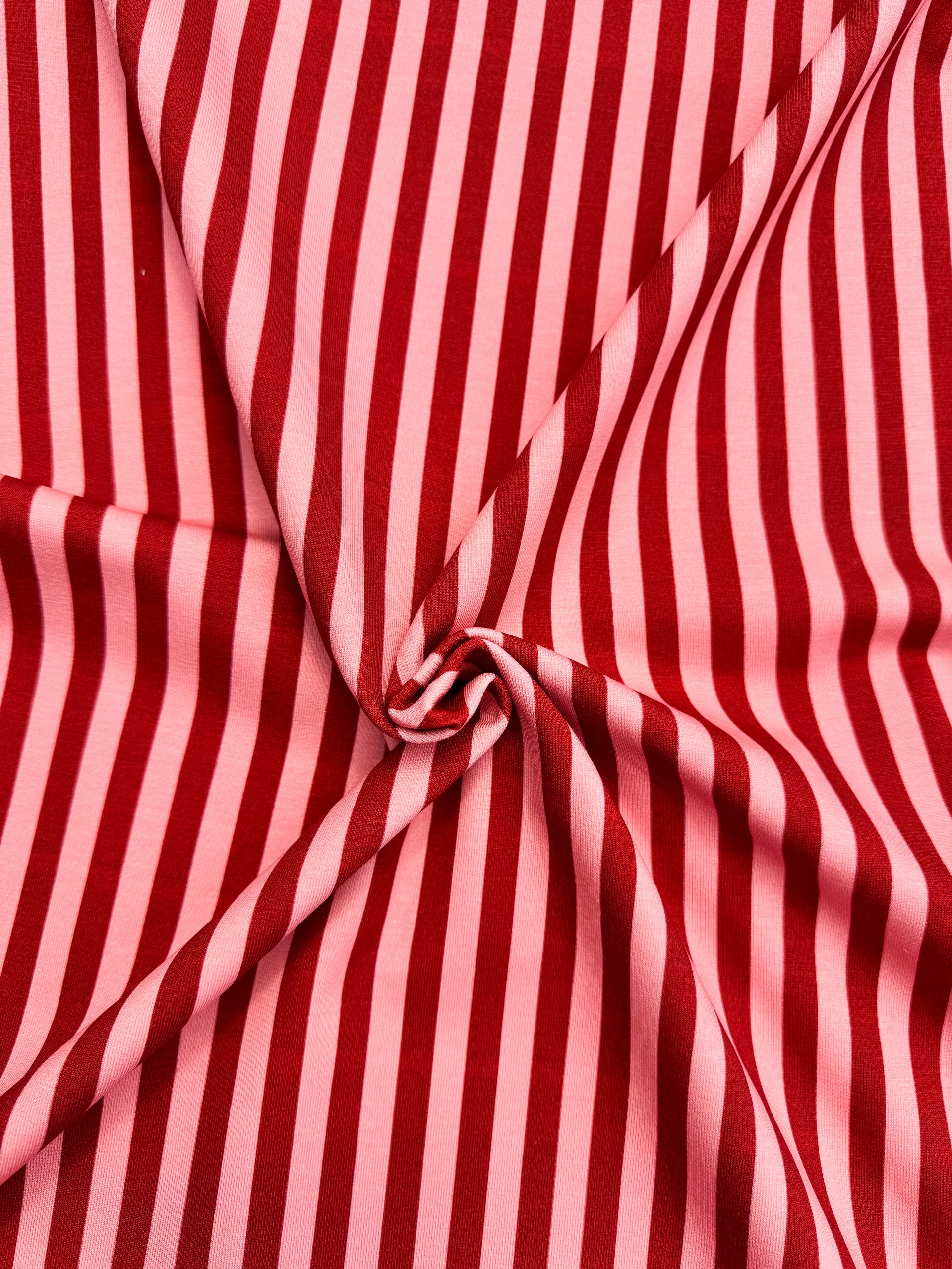 Wijnrood met roze gestreept jersey