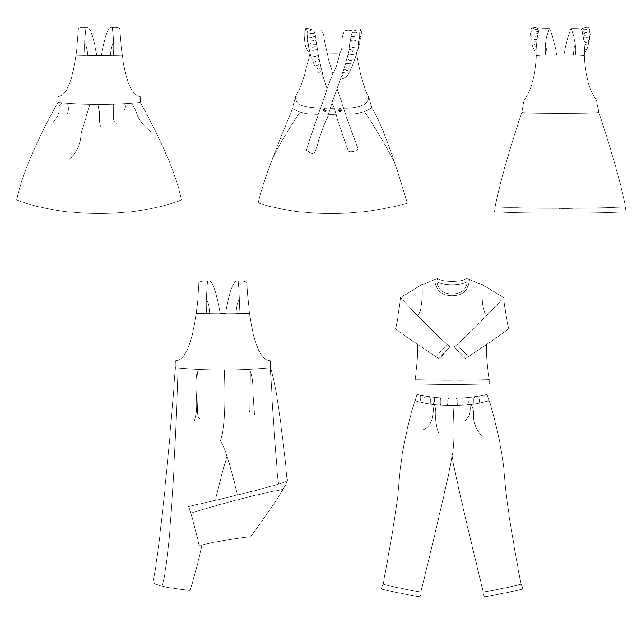 Verder kan je ruffles toevoegen aan de schouderlinten bij alle opties en/of zakken waar de meisjes hun schatten in kunnen bewaren.