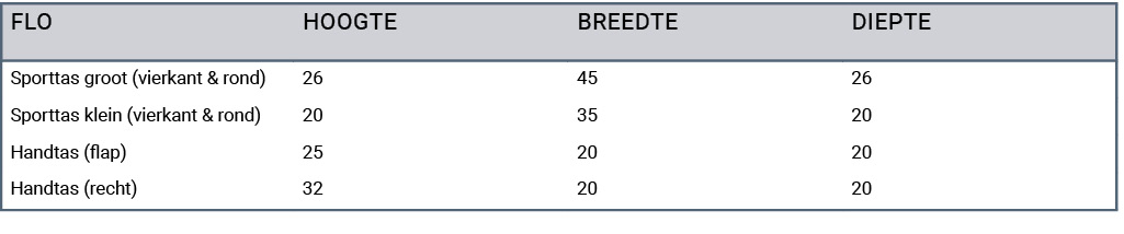 - een gevoerde sporttas in twee formaten en in een ronde en vierkantige versie