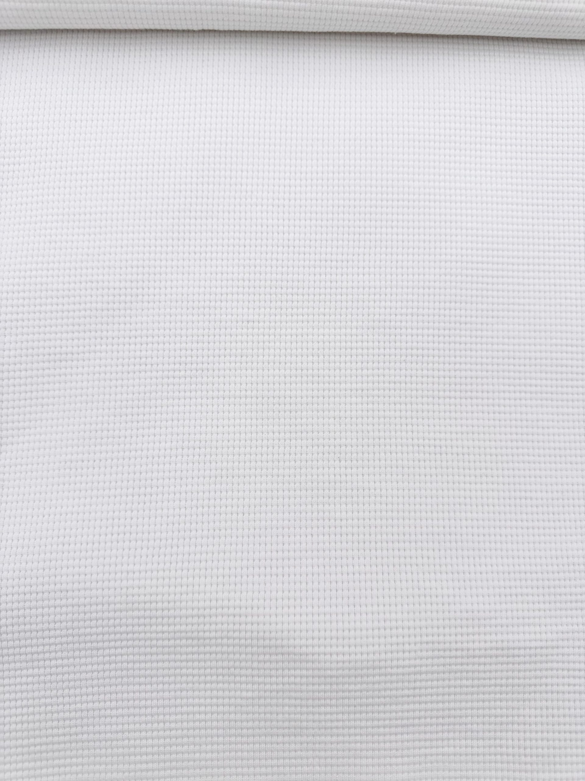 Onze witte wafeljersey is de perfecte basisstof voor talloze creaties. De subtiele wafelstructuur geeft de stof een luxe uitstraling en een heerlijk zacht gevoel, terwijl het zuivere wit zorgt voor een frisse, tijdloze look die overal bij past.
